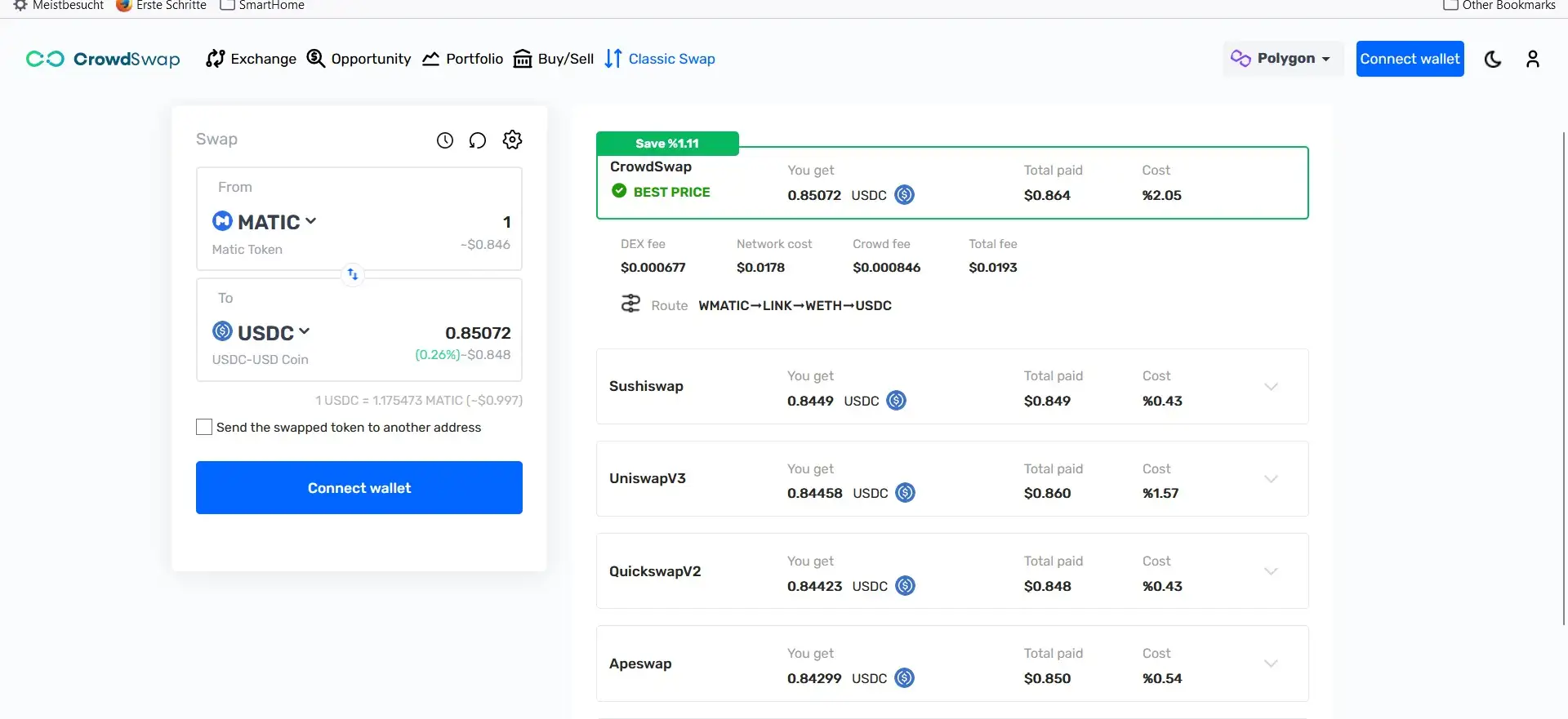Competitors of CrowdSwap include other DeFi aggregators and decentralized exchanges (DEXes) such as 1inch, Matcha, and Paraswap. These platforms also offer price aggregation and routing services, but CrowdSwap distinguishes itself through its focus on user experience, cross-chain compatibility, and comprehensive feature set. By continuously enhancing its platform and listening to user feedback, CrowdSwap aims to stay ahead of its competitors and provide unmatched value to its users.