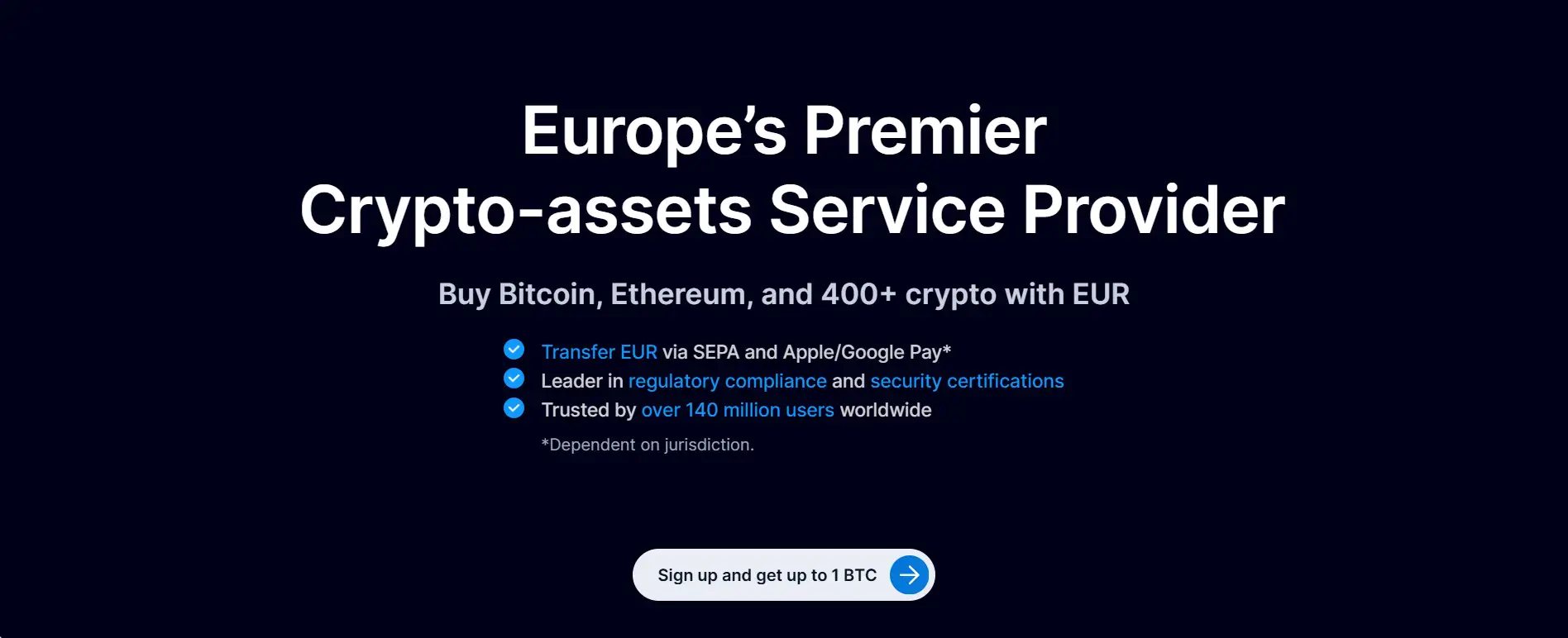 - Step 3 – Fund Your Wallet: Deposit fiat via SEPA, credit/debit cards, or use Apple/Google Pay. You can also deposit crypto from another wallet.