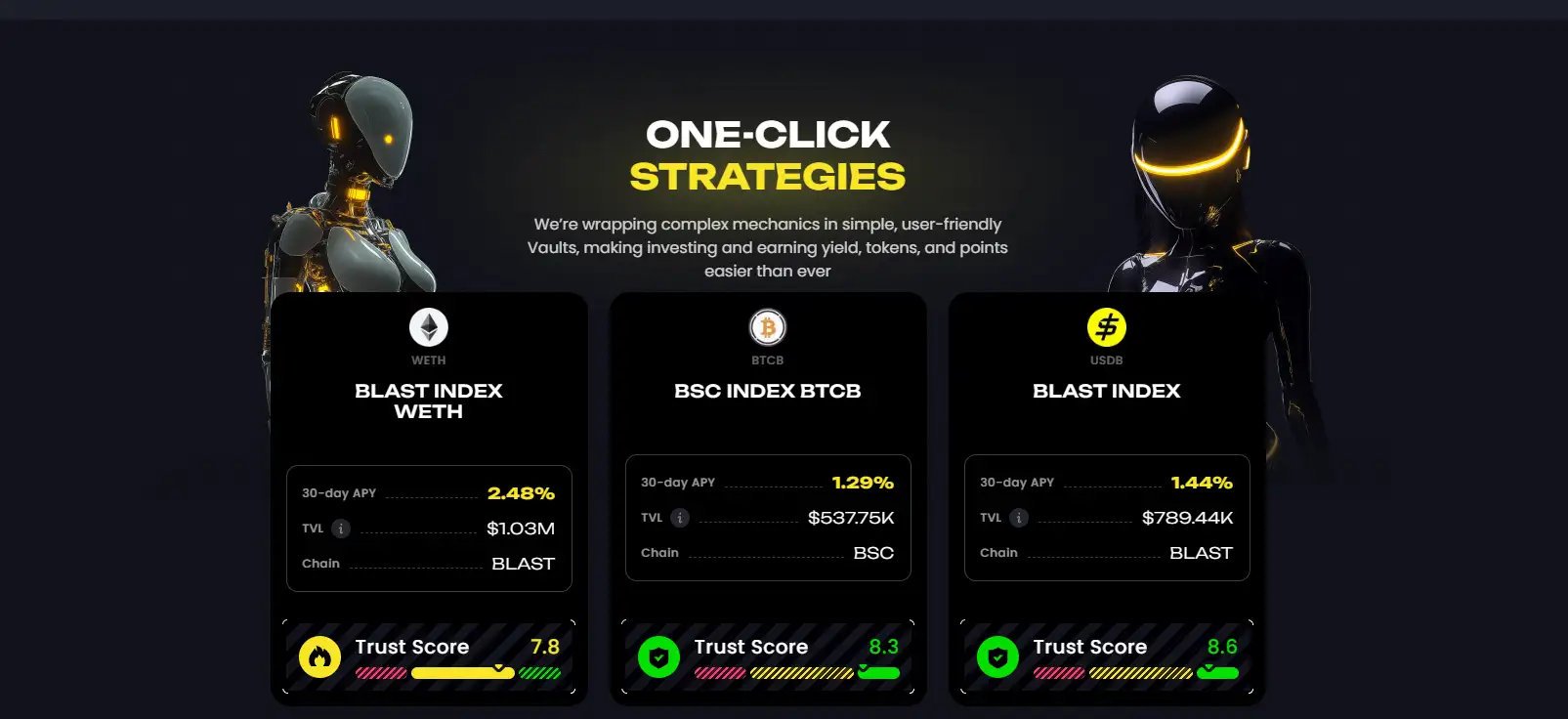 - One-Click Vault Access: Easily deploy capital into high-performing DeFi strategies across multiple chains with just one click.