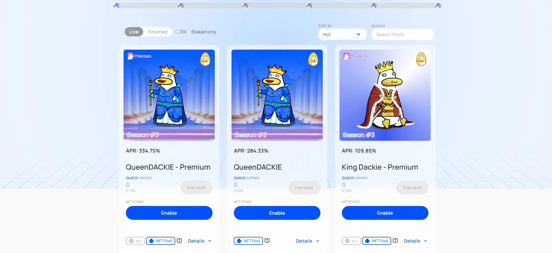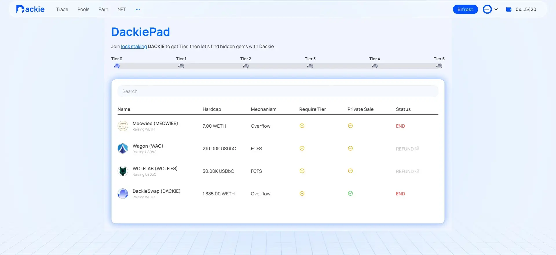 - Stake and Farm: Deposit DACKIE tokens into staking pools or provide liquidity to start earning rewards.