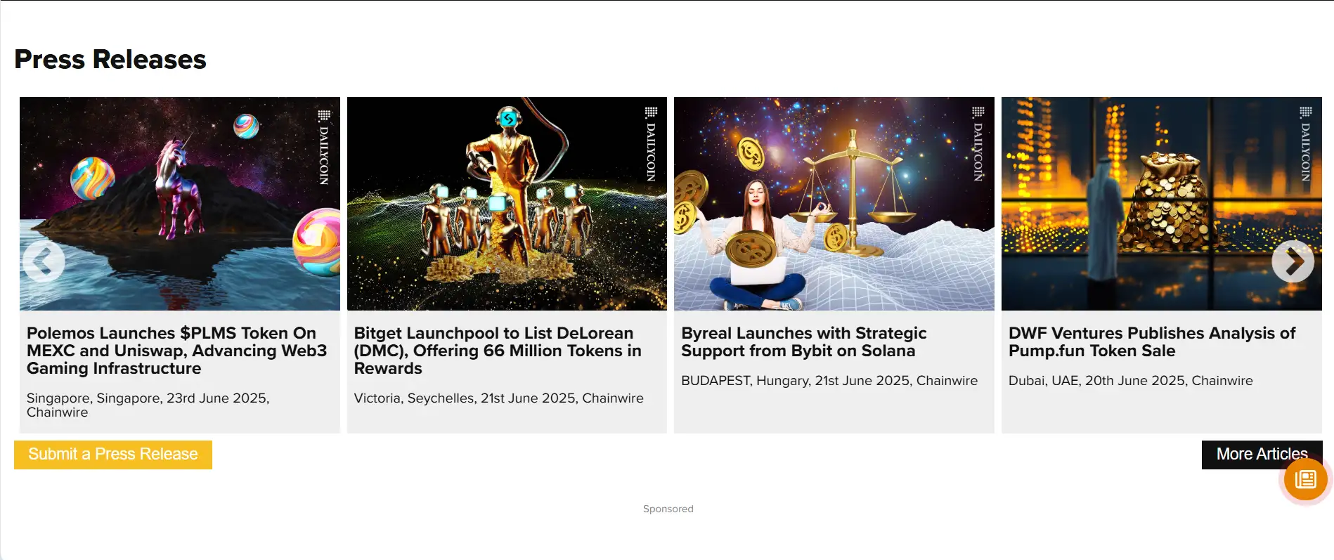 Yes, DailyCoin provides banner ads, sponsored content, interview videos, and custom campaigns across its platform and social channels. Projects can also benefit from placements in the “Most Read” section for extended visibility. Learn more via their advertising page.