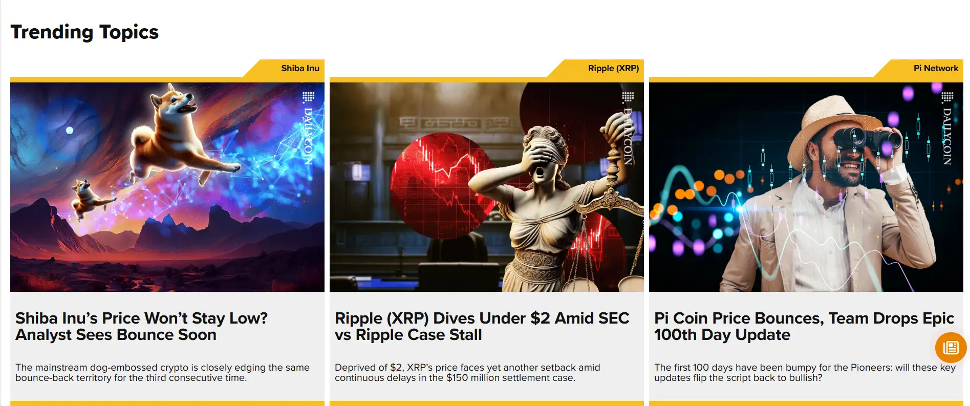 - Explore the Site: Visit dailycoin.com and browse the main sections: News, Exchanges, Cryptopedia, Investigations, and Trending.