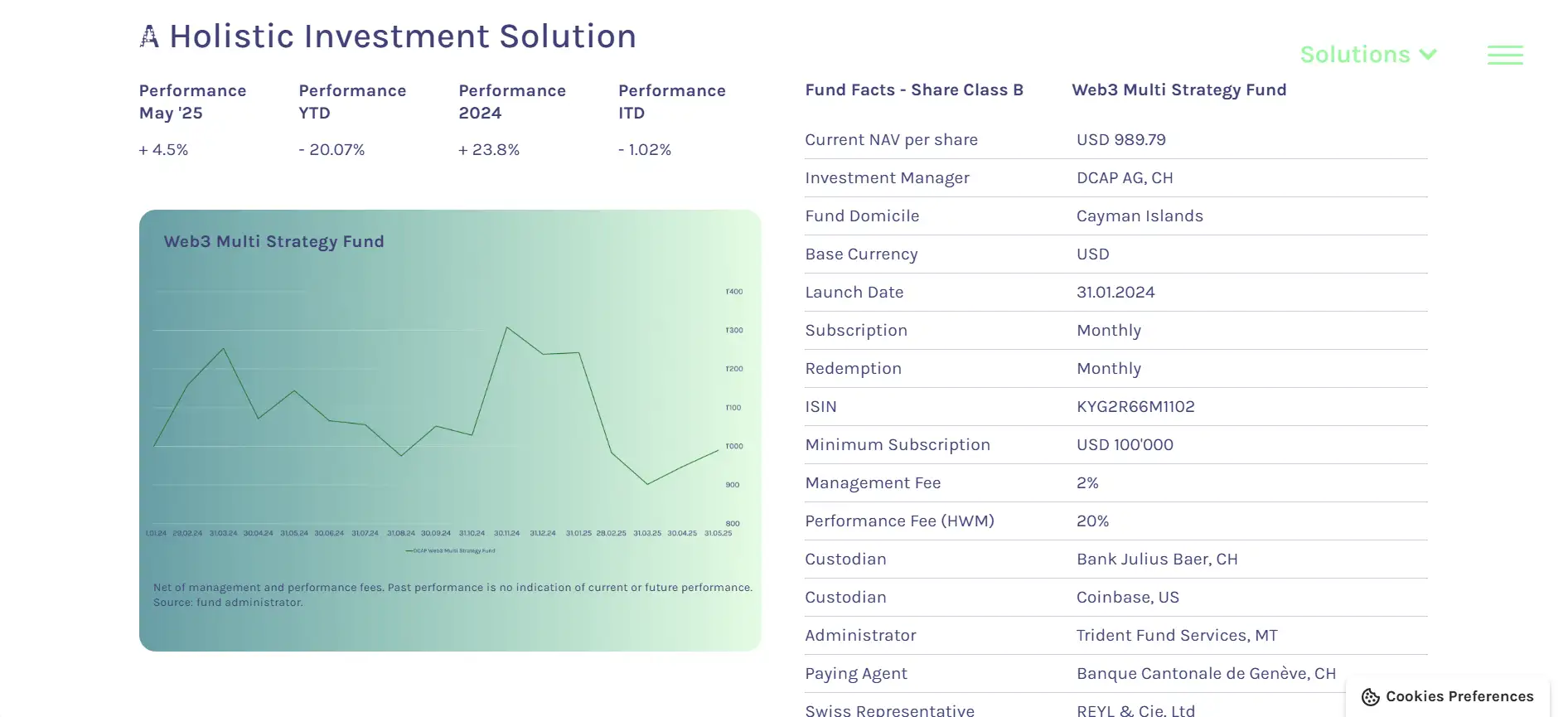 The Web3 Multi Strategy Fund is structured for investors who seek diversified, long-term exposure to the evolving digital asset landscape. With monthly subscriptions and redemptions, a Cayman Islands domicile, and blue-chip service providers like Bank Julius Baer and Coinbase Prime, the fund is professionally managed and well-regulated. It provides exposure across the Web3 value chain—from infrastructure to consumer applications—offering a balanced way to access growth without overexposure to any single asset class. Learn more at DCAP.