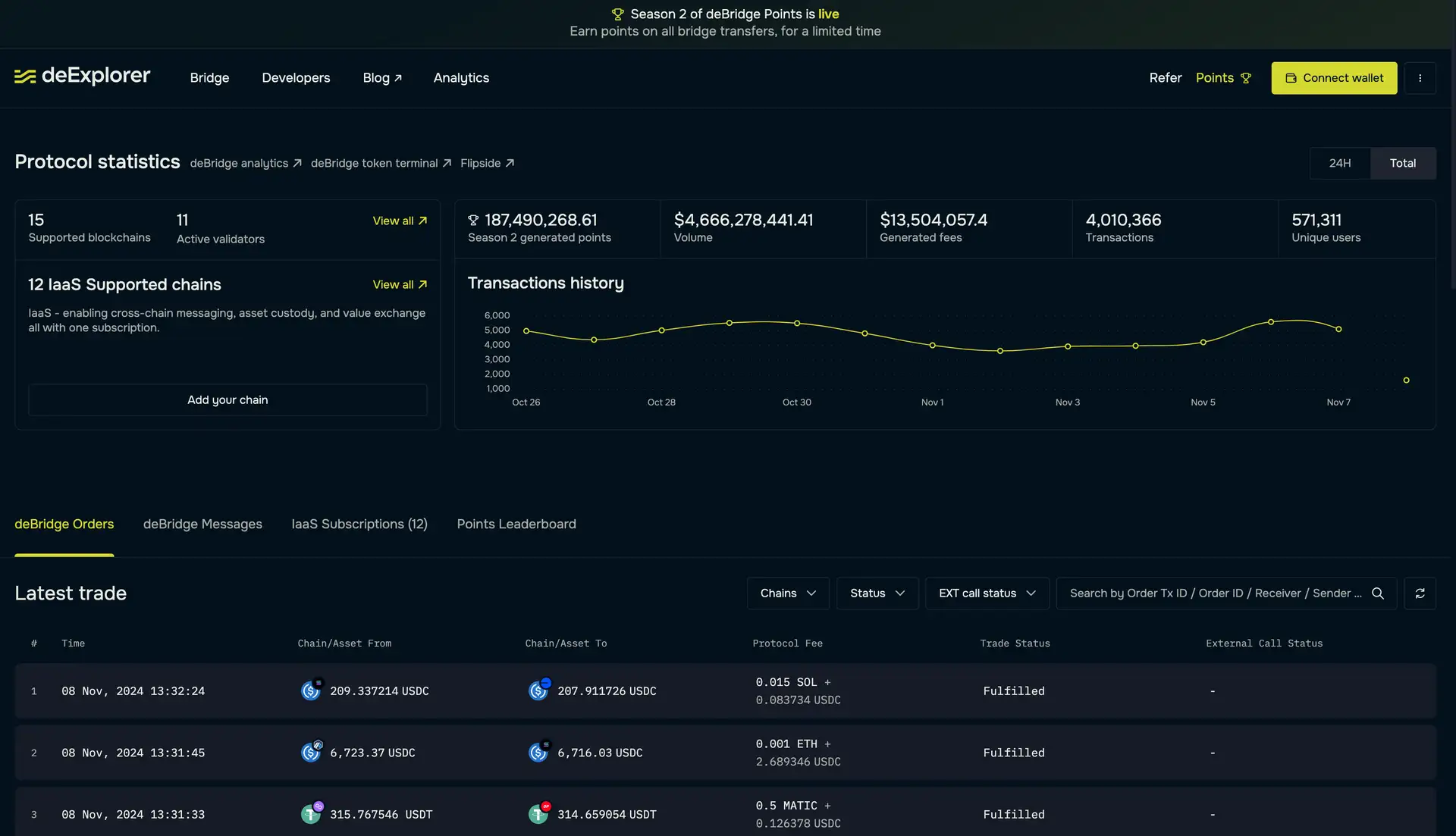 One of DeBridge's standout features is its ability to optimize liquidity across chains, a crucial requirement for DeFi projects. By enabling cross-chain liquidity transfers, DeBridge allows developers to enhance capital efficiency and unlock new use cases. Additionally, its modular design simplifies the integration of cross-chain functionalities, making it highly appealing to developers.