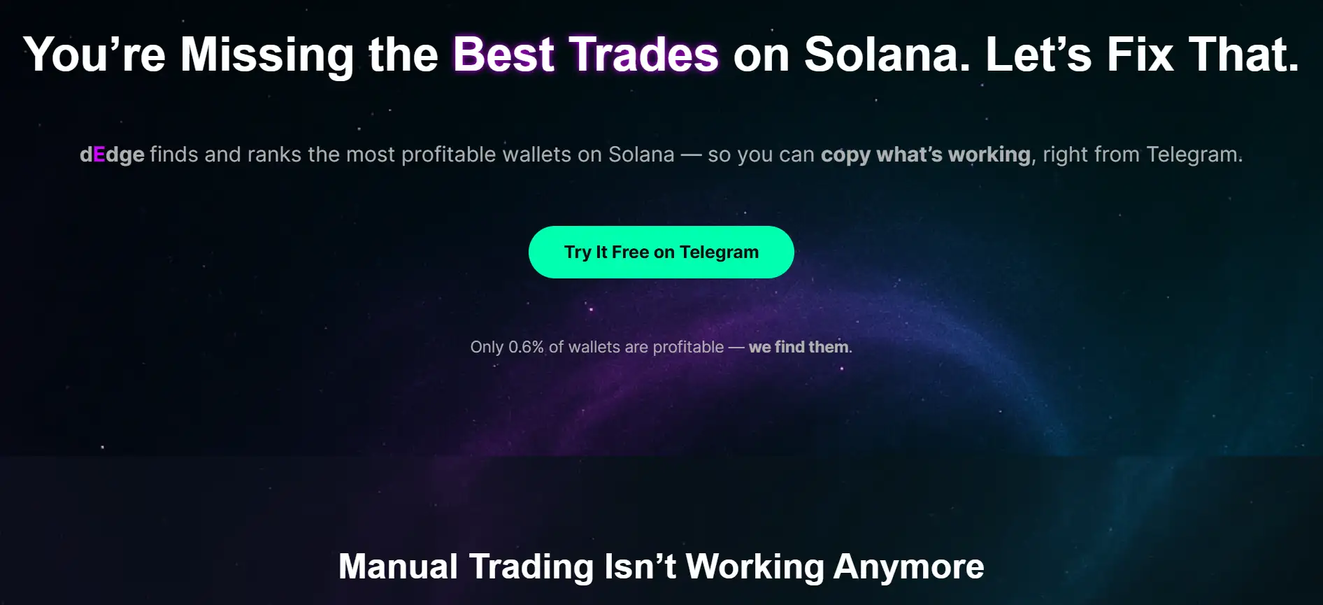 dEdge is a high-performance, non-custodial wallet analysis and copy trading platform built specifically for the Solana ecosystem. Designed for traders who are tired of guessing, dEdge scans millions of on-chain transactions to identify the rare wallets that consistently turn a profit—allowing users to follow and copy their strategies directly through Telegram.