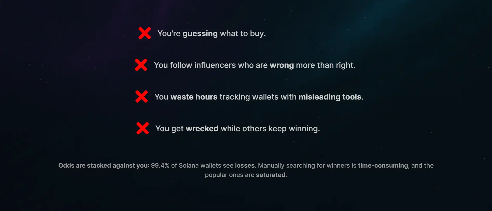 - Curated & Filtered Wallet Lists: Premium access to expert-selected wallets that show consistent gains and low-risk behavior.