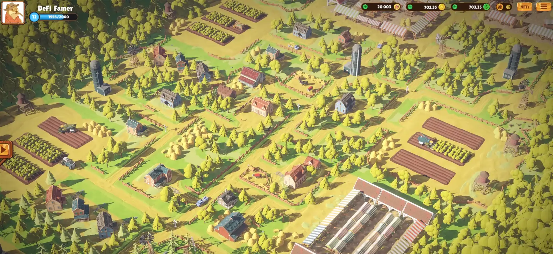 The marketplace in DeFi Land is a bustling hub where players can trade their harvested crops, animal products, and crafted items. This marketplace operates on a supply and demand basis, reflecting real-world economic principles. Players can also trade NFTs representing unique in-game items, enhancing the game's collectibility aspect.