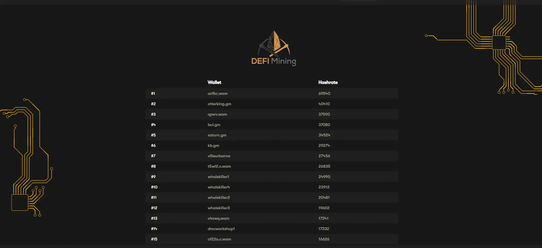 DEFI Mining IO is a decentralized mining simulation built on the WAX blockchain, designed to let users experience the mining ecosystem in a gamified, interactive format. At its core, the platform enables participants to assemble their own virtual mining rigs using NFT-based hardware components, stake them, and begin earning rewards in the form of digital tokens. This simulation reflects the infrastructure of real-world mining, where equipment efficiency, maintenance, and setup strategy all impact output. The experience is enhanced by rich interactions with the platform’s various tools and marketplaces.