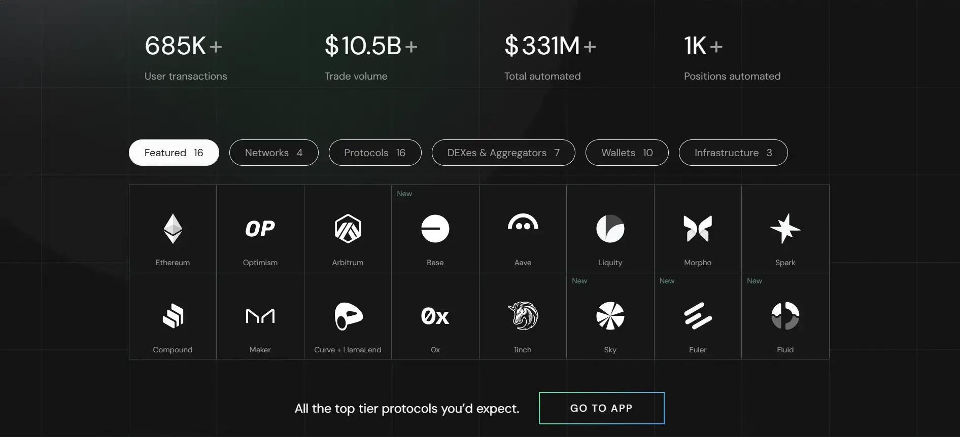 DeFi Saver was launched with the vision of simplifying access to decentralized finance while maintaining high standards of flexibility and transparency. Developed by the Decenter team, the platform has grown to support over $10.5B in trade volume and more than 685,000 transactions. With over $331M worth of positions automated, the application is used by DeFi traders, institutions, and yield strategists to maintain optimal positions and avoid liquidation events.