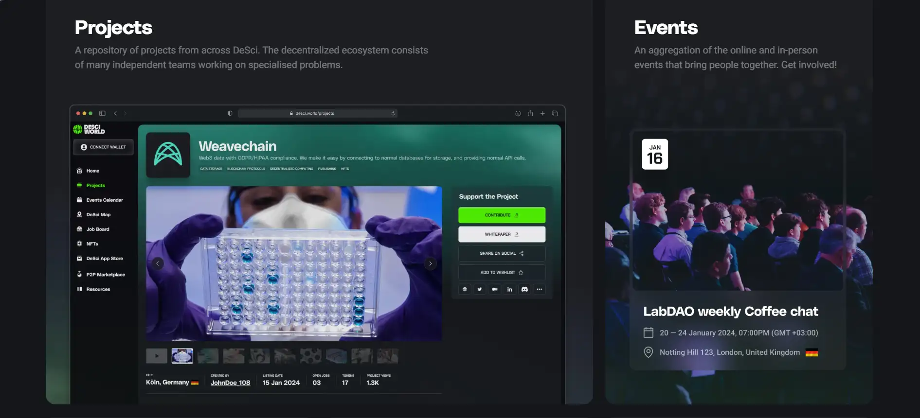 - Educational Tools & Events: Join live events, read documentation, and participate in the evolving cultural conversation around DeSci.