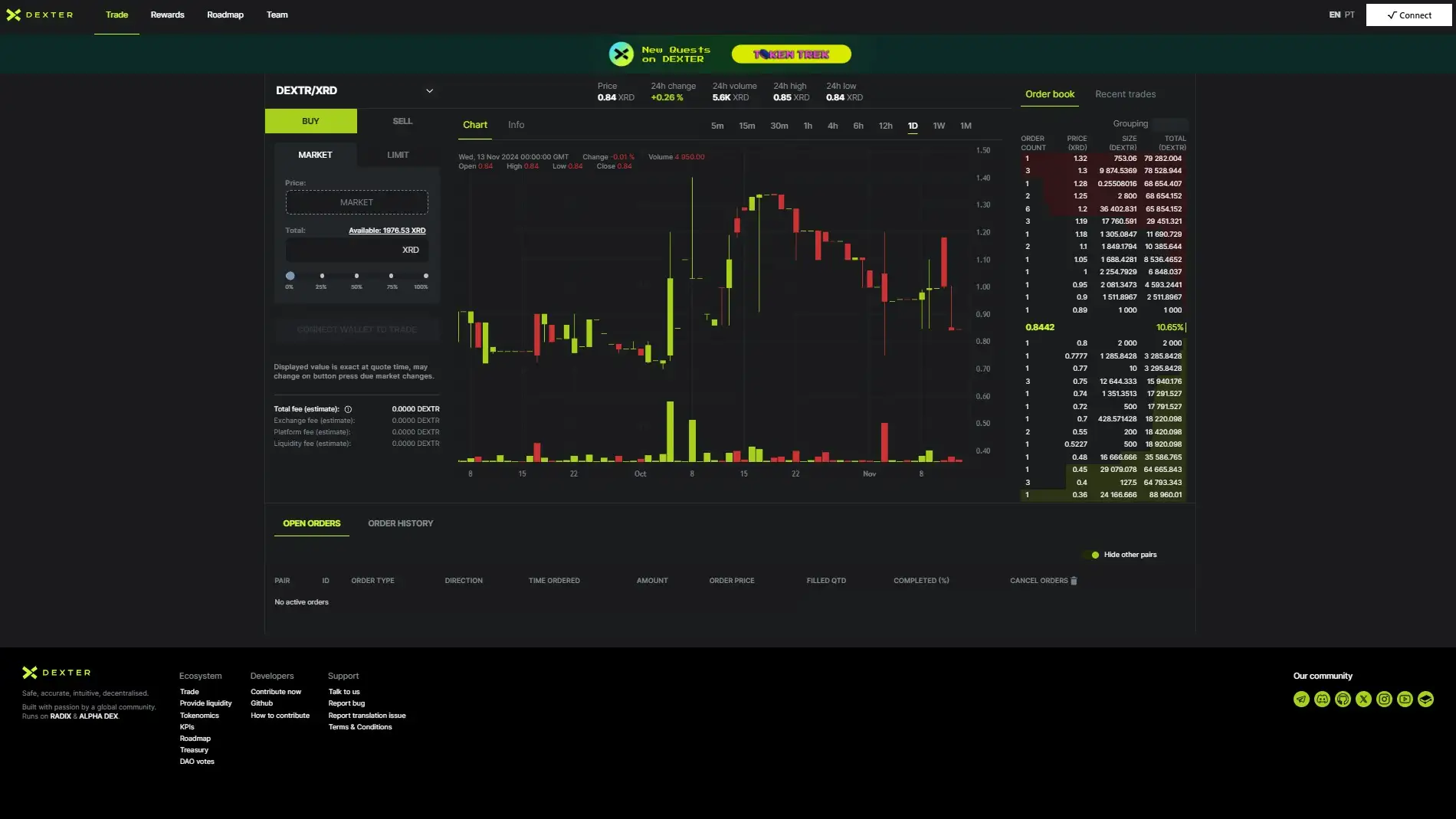 DeXter is a revolutionary decentralized order book exchange operating on the Radix network, a cutting-edge blockchain ecosystem designed for scalability, security, and usability. Unlike many other decentralized exchanges that rely on automated market makers (AMMs), DeXter adopts a fully decentralized order book model, enabling peer-to-peer trading with unmatched transparency and control. The platform stands out as a community-driven initiative, meaning it is entirely developed and maintained by a global network of volunteers, including developers, designers, and marketers. This decentralized, collaborative approach embodies the ethos of decentralized finance (DeFi).