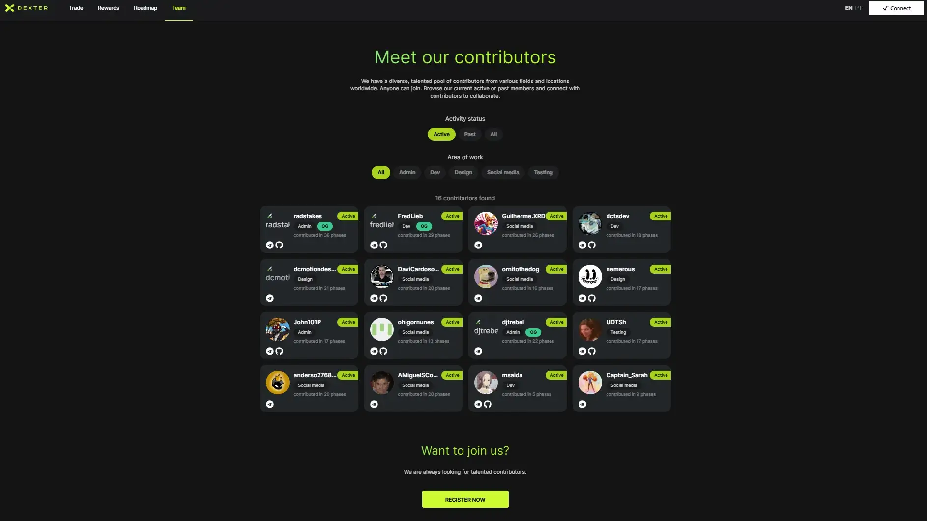 - Community-Driven Development: DeXter is entirely developed and maintained by a global network of volunteers, ensuring that the platform remains decentralized and aligned with its users’ needs. Contributions are rewarded with DEXTR tokens.