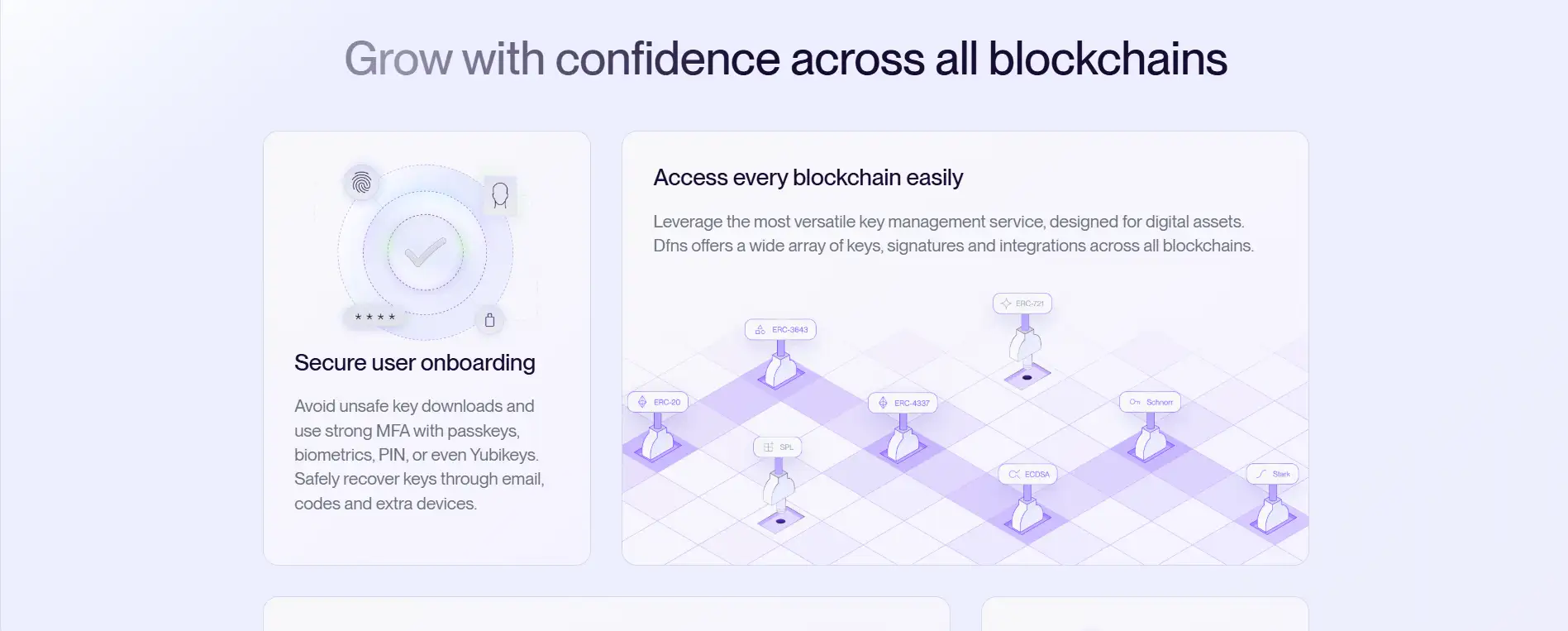 - Institutional-Grade Security: Leveraging advanced MPC cryptography, passkey authentication, and real-time attestation, Dfns ensures zero single points of failure.