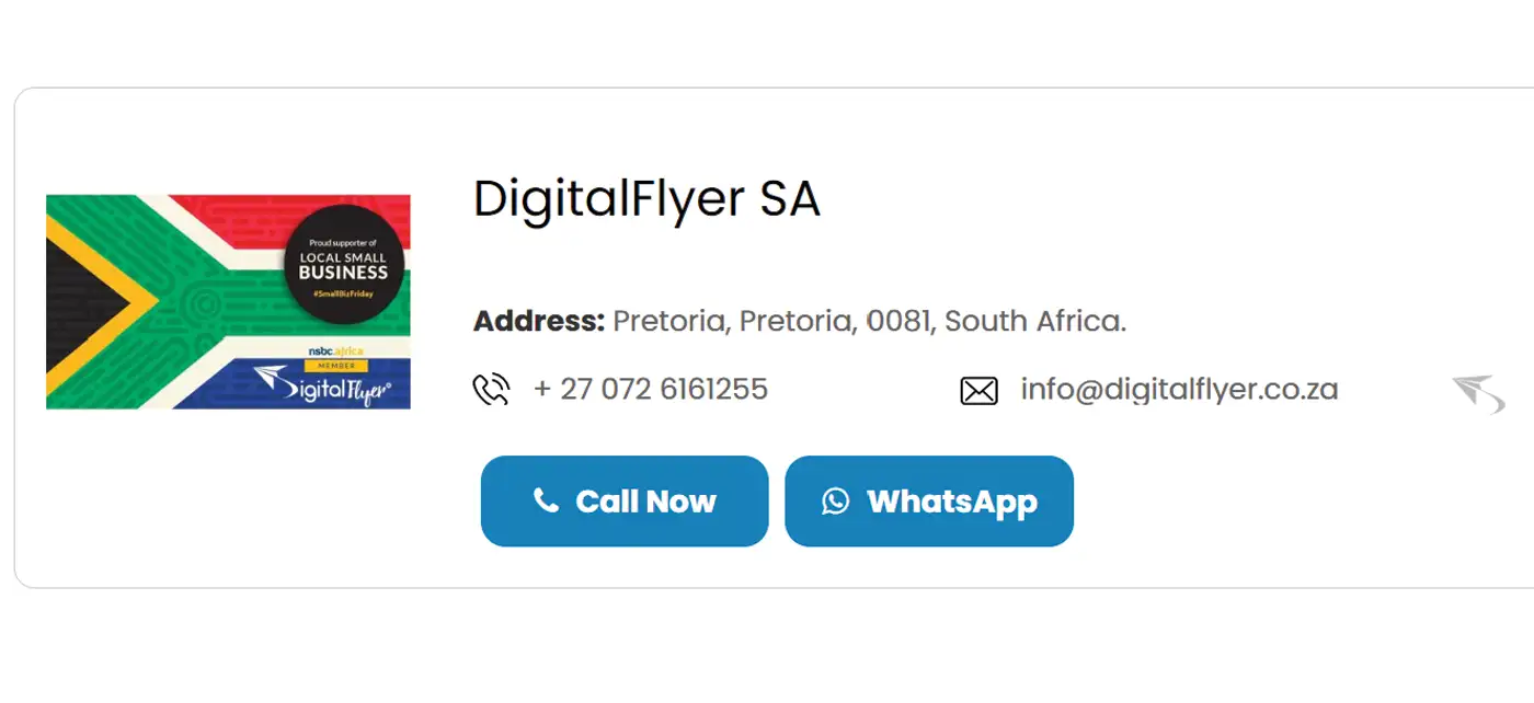 DigitalFlyer is a comprehensive online marketplace designed to support local businesses across South Africa. Launched with the vision of enhancing local commerce, DigitalFlyer provides a platform where businesses can list their products and services, reaching a wider audience and facilitating seamless transactions.