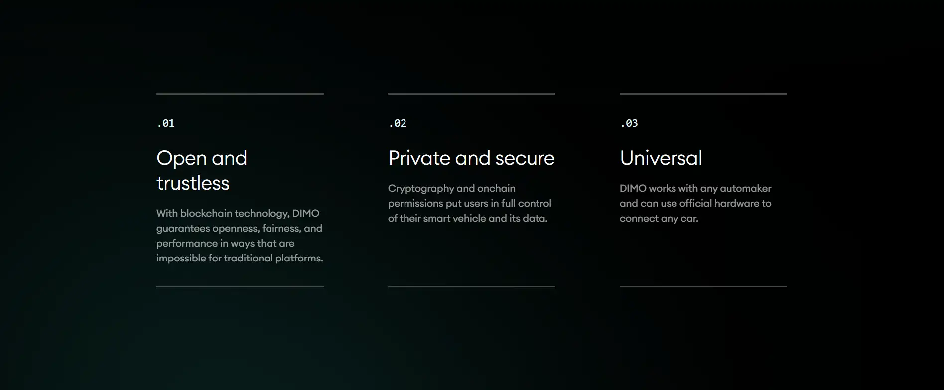 DIMO provides numerous benefits and features that make it a standout platform in the connected car and mobility ecosystem: