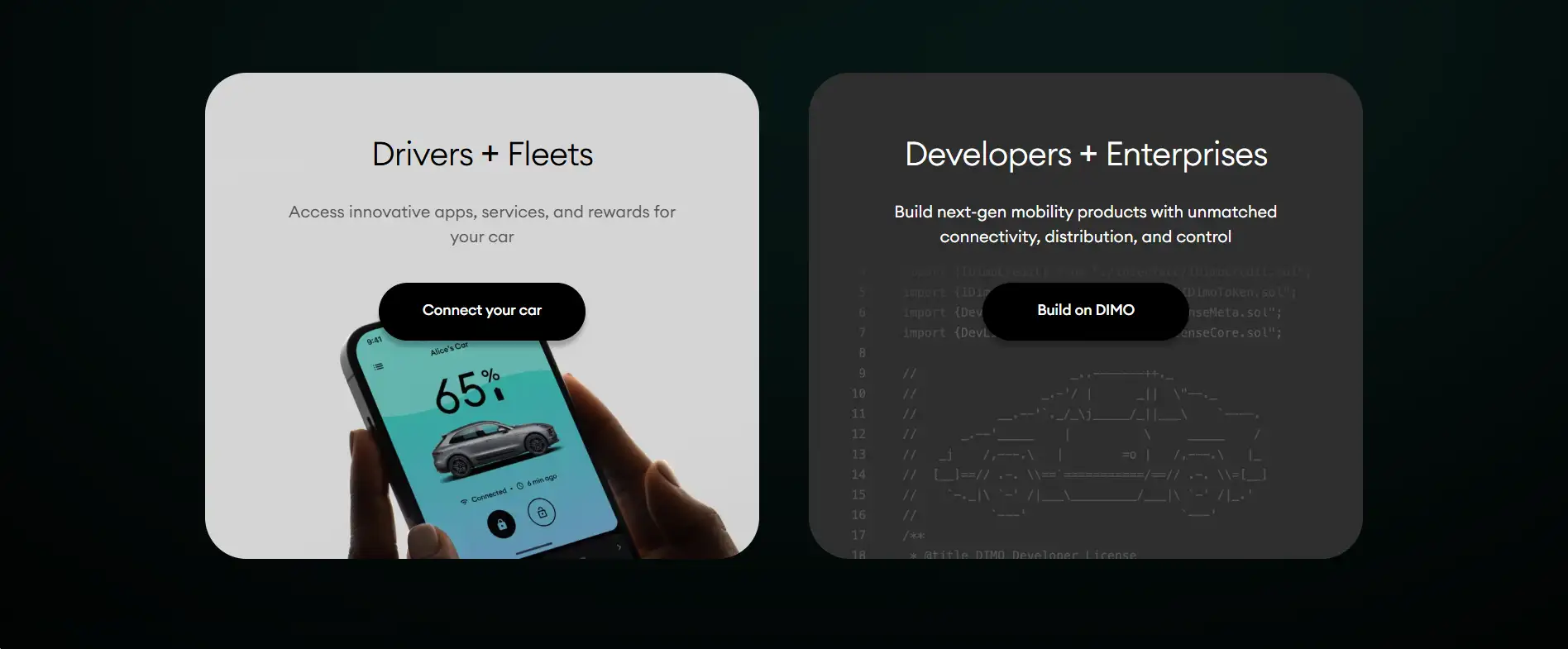 - Mobility App Ecosystem: Developers can build apps for maintenance, insurance, gaming, or fleet tracking directly on top of DIMO's open infrastructure.