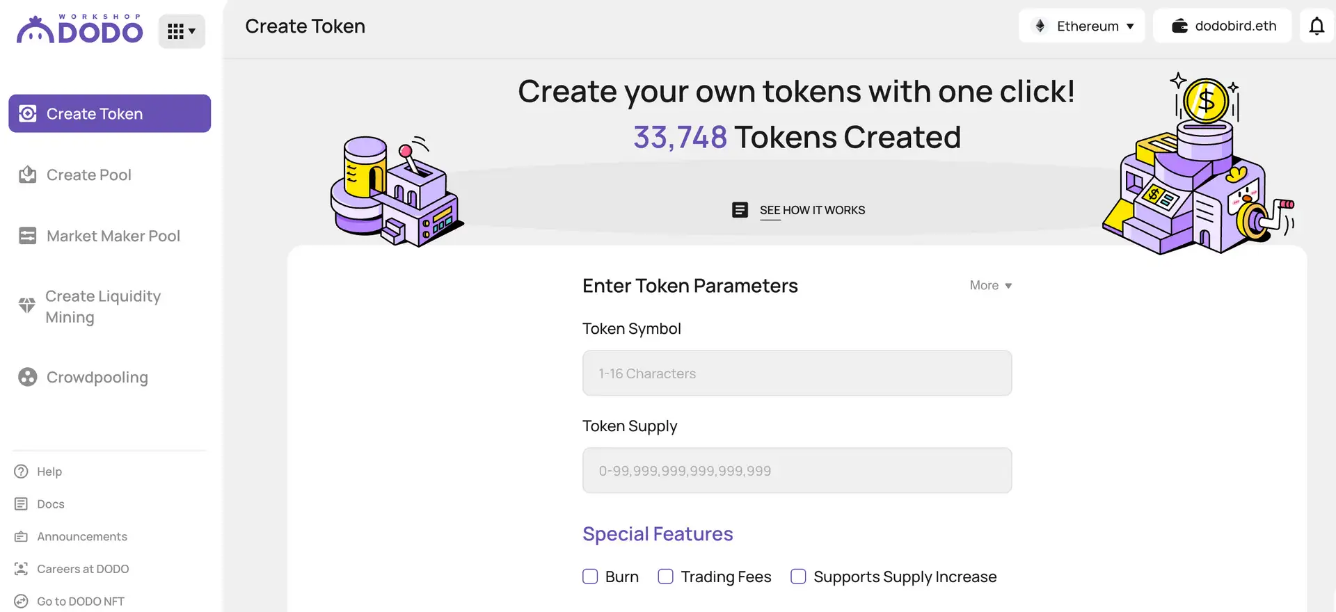 - Create an Account: Visit DODO and connect your wallet using MetaMask, WalletConnect, or other supported wallets.