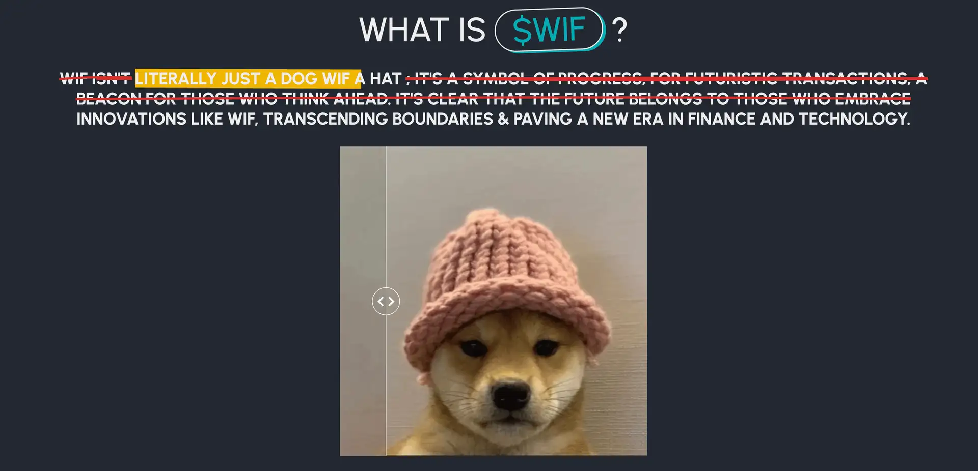 Dogwifhat (WIF) is a rapidly growing meme coin that has taken the Solana blockchain by storm. Unlike traditional meme coins that rely solely on nostalgia or existing trends, Dogwifhat introduces a fresh and humorous approach to the meme coin market. Inspired by an internet-famous image of a dog wearing a pink knitted hat, WIF quickly became a cultural sensation and a dominant player among Solana-based tokens.