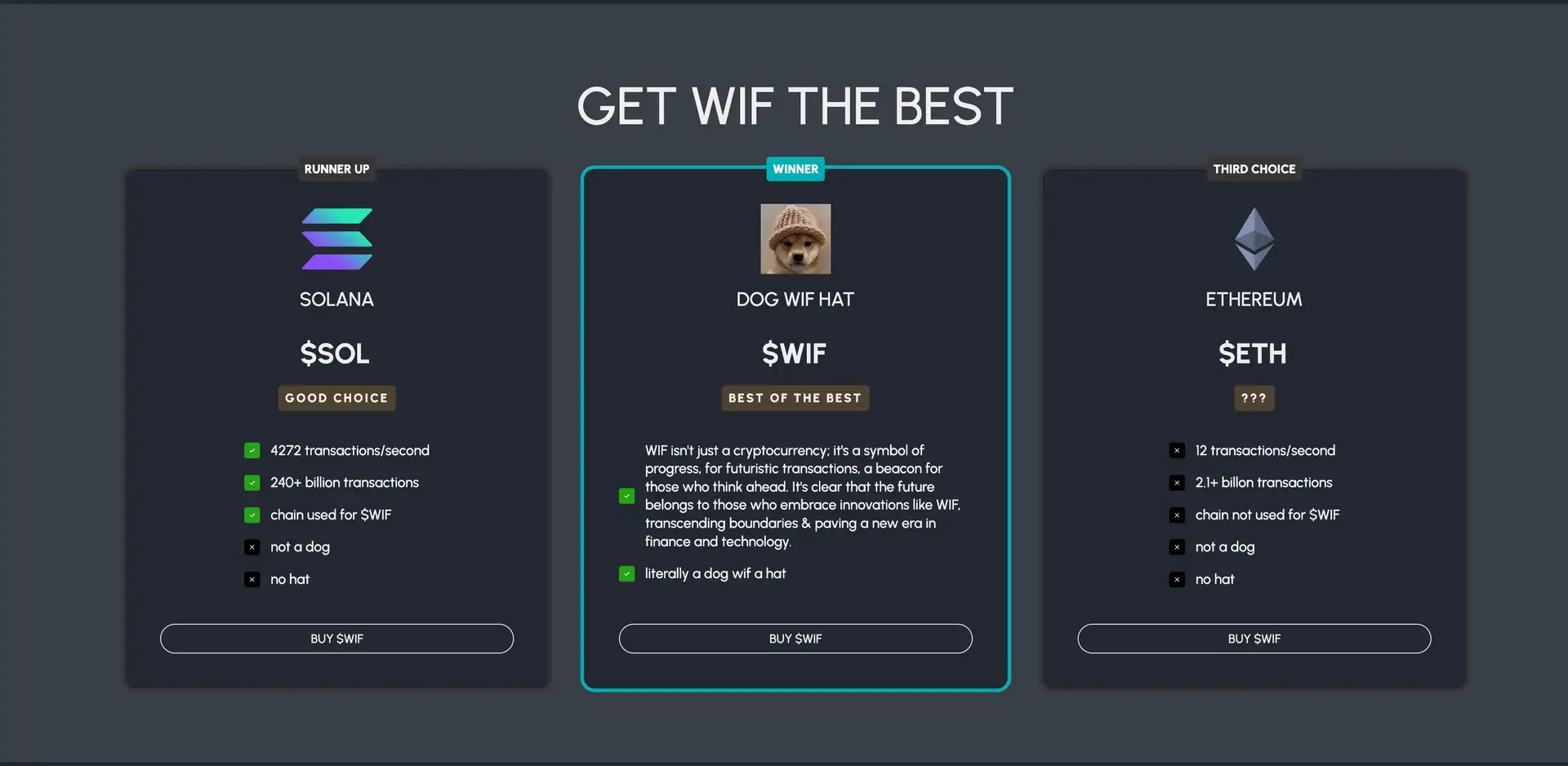 Unlike Ethereum-based meme coins like Dogecoin (DOGE) and Shiba Inu (SHIB), which often suffer from high gas fees, WIF benefits from Solana’s high-speed and cost-efficient transactions. This has made it a favorite among traders and meme coin enthusiasts looking for a fun yet functional digital asset.