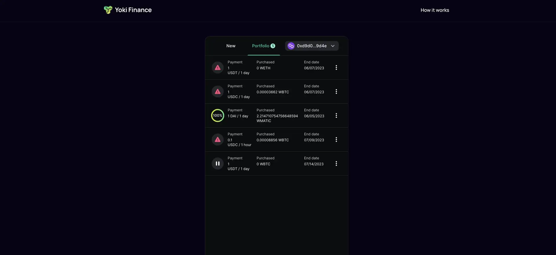 - Track and Adjust Your Investments: Yoki’s dashboard provides an accessible view of all active DCA plans. You can monitor your investment progress, view transaction details, and make any necessary adjustments to the frequency or amount through Yoki Finance directly.