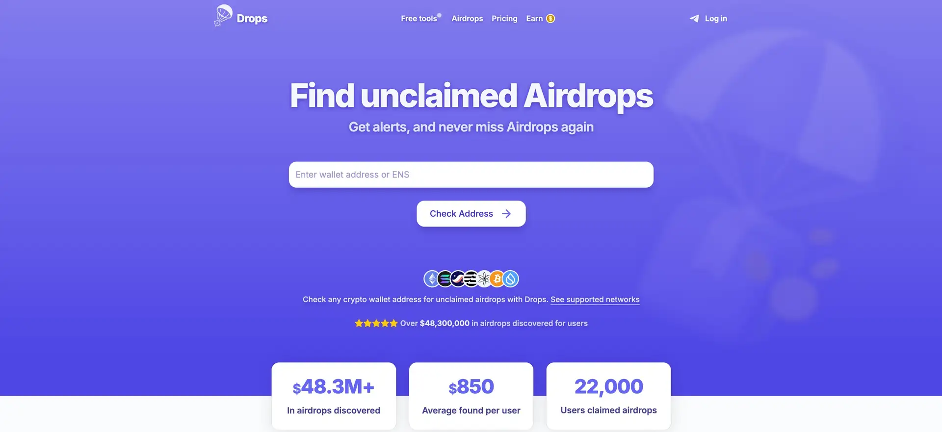 Drops Bot uses advanced on-chain analysis to track unclaimed crypto airdrops across multiple blockchains like Ethereum, Solana, Arbitrum, and more. Instead of requiring a wallet connection, users simply enter their public wallet address, and the bot cross-references it with verified airdrop databases. This ensures a secure and private way to check airdrops while protecting user anonymity.