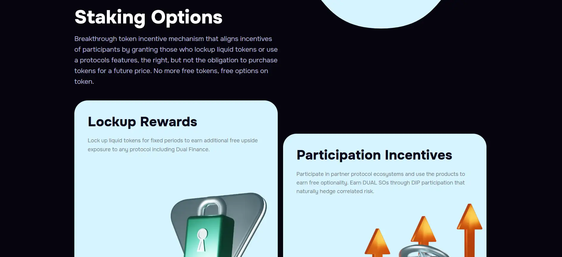 Lock up DUAL tokens or participate in pools to earn Staking Options that provide long-term upside. -