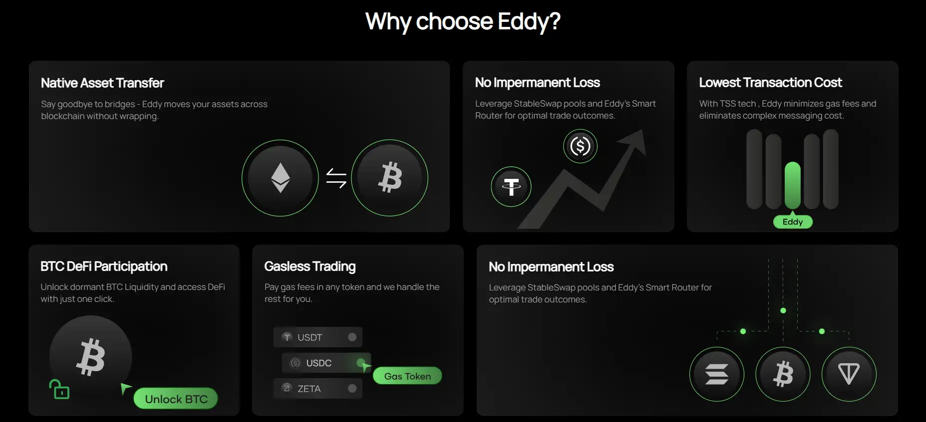 Eddy Finance offers a range of powerful features and benefits that make it a preferred choice among DeFi users. Key highlights include:
