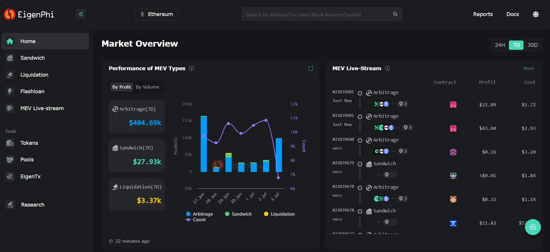 - Visit the Platform: Go to eigenphi.io to access the full suite of MEV dashboards.