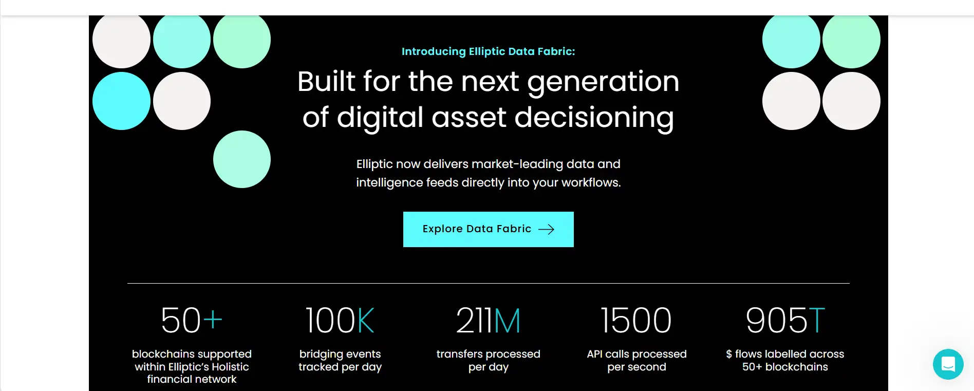 At its core, Elliptic provides comprehensive data feeds and APIs that integrate seamlessly into institutional workflows. The new Elliptic Data Fabric serves as a foundation for delivering market-leading blockchain intelligence at scale—enabling more than 1500 API calls per second and analyzing over 211 million transfers daily. Its coverage includes 99% of all digital asset trading volume and over 1 billion labeled crypto addresses, making it the most extensive dataset in the industry.
