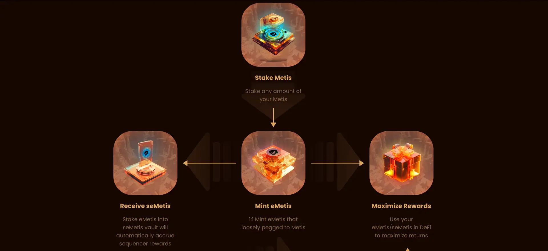 - DeFi Composability: Use eMetis and seMetis across DeFi apps to maximize earnings and maintain liquidity.