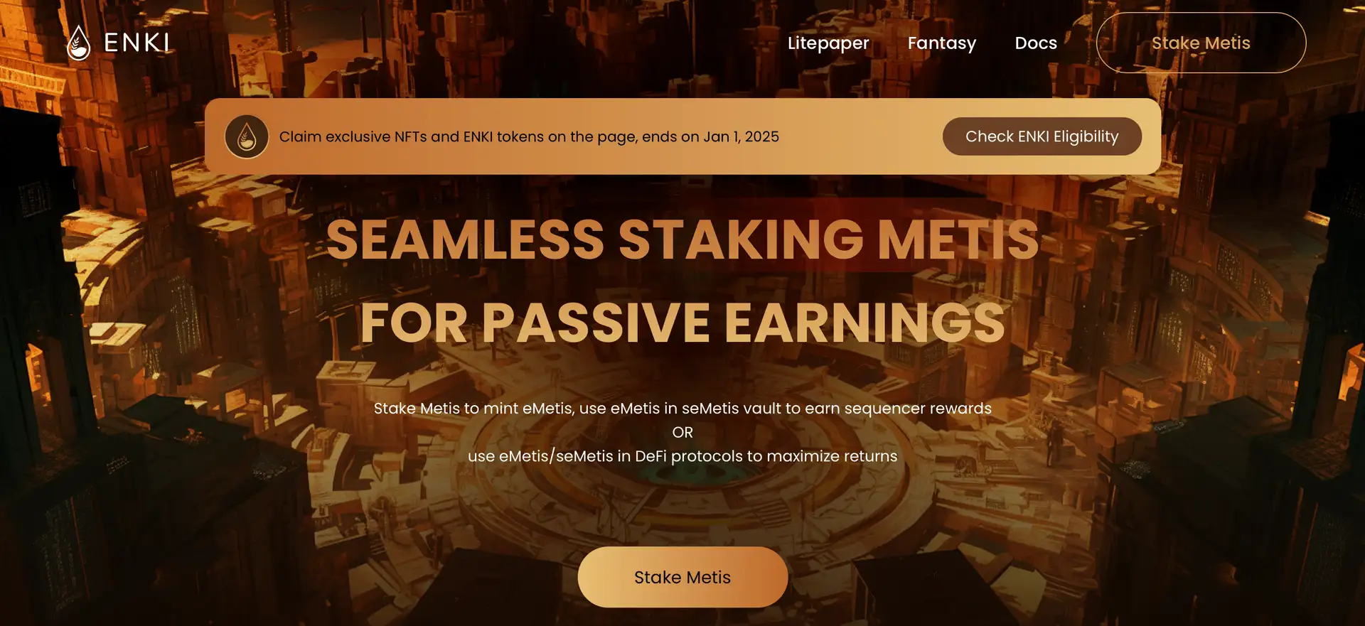 ENKI Protocol is a next-generation liquid staking platform designed specifically for the Metis decentralized sequencer ecosystem. Built to address the complexities of sequencer node operation, ENKI Protocol enables users to stake Metis tokens without technical barriers while still participating in the network’s yield generation model. By transforming Metis into eMetis and seMetis, ENKI allows users to retain liquidity and earn sequencer rewards without locking up assets.