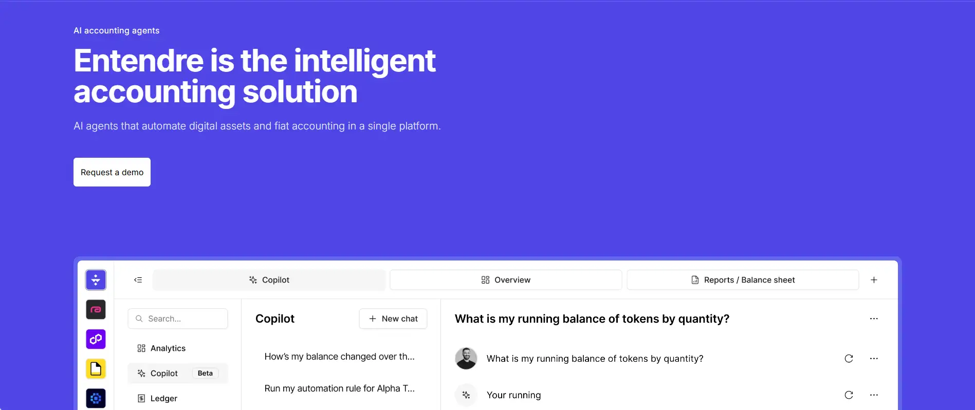Trusted by major players like Polygon, Celestia, Premia Finance, and Fuel3, Entendre is built for scale and audit readiness. The company is backed by leading investors including MoonPay, Basis Set, and Valhalla Ventures, and has also partnered with Maple Finance to support institutional DeFi automation. Unlike competitors such as Cryptio and Bitwave, Entendre uniquely combines AI automation with full-spectrum accounting to support everything from basic bookkeeping to full audit and compliance workflows.
