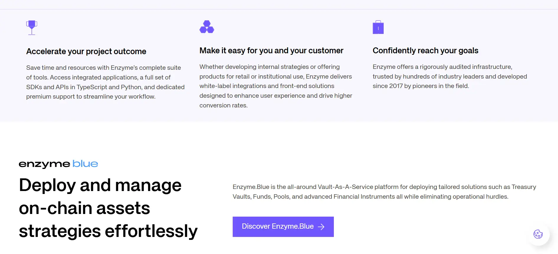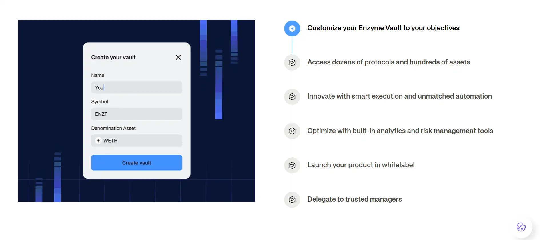 Launched in 2017, Enzyme has evolved into a comprehensive platform offering institutional-grade tools and services. These include white-labeled front-end solutions, API and SDK support, advanced risk management, and regulatory compliance tools. Whether you're a DAO, DeFi protocol, exchange, or traditional financial manager, Enzyme makes it easy to build, customize, and manage vaults with complete flexibility.