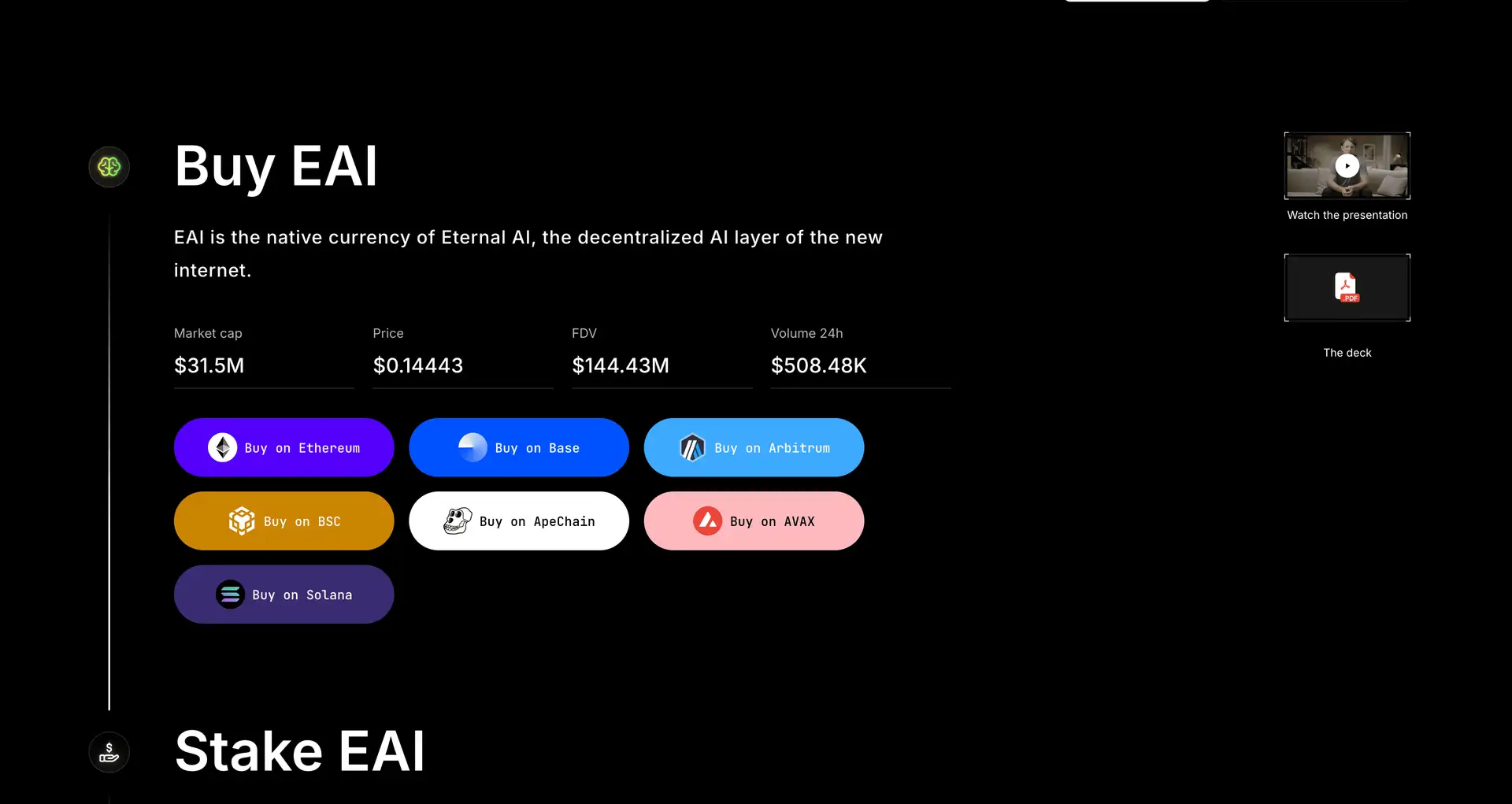 Eternal AI represents a groundbreaking fusion of blockchain technology and artificial intelligence, offering a platform where advanced AI models operate securely and autonomously within decentralized ecosystems. At its core, Eternal AI deploys "Eternals," which are AI models encoded as smart contracts, capable of operating on blockchain networks such as Bitcoin, Ethereum, and Solana. Unlike traditional AI systems, which are typically centralized and prone to censorship, Eternal AI's decentralized architecture ensures that these models are tamper-proof, transparent, and accessible to all users.