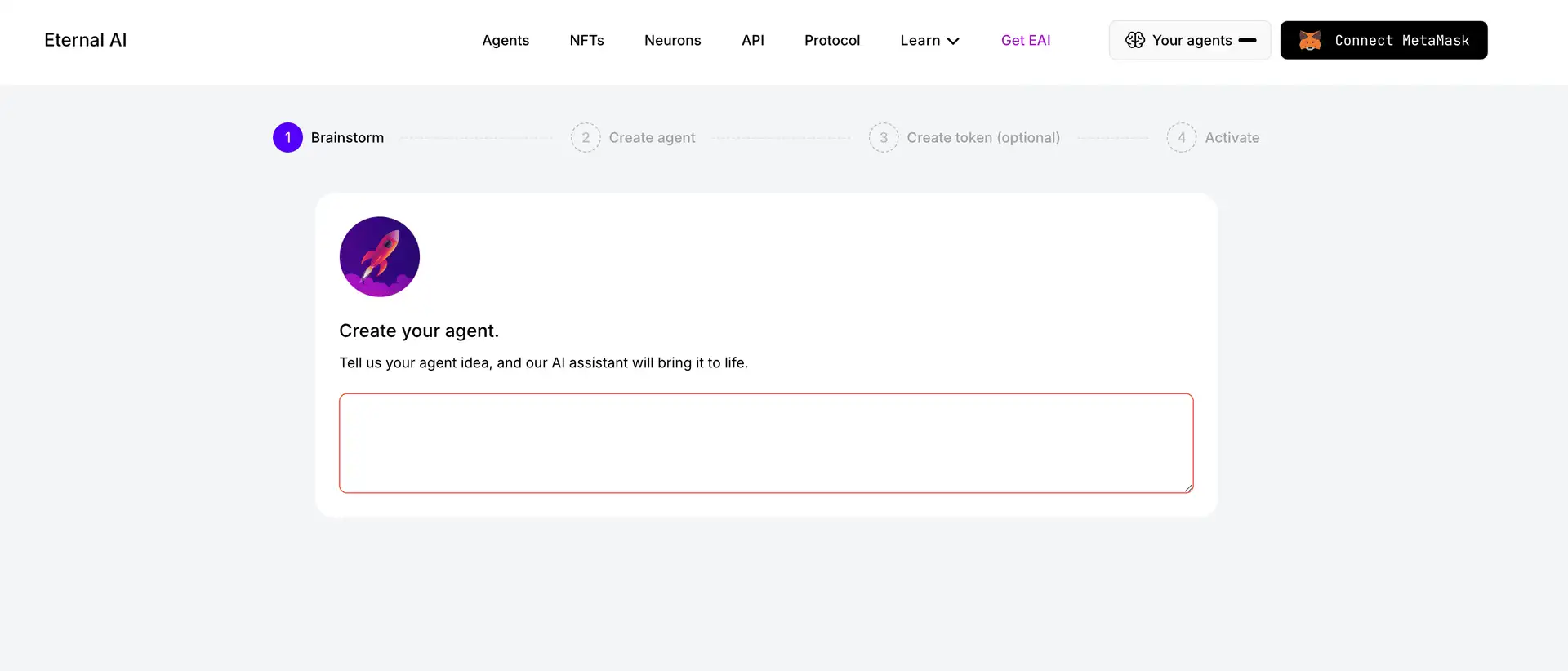 - Set Up a Wallet: Create a self-custody wallet compatible with Bitcoin, Ethereum, or Solana to manage assets and interact with Eternal AI's smart contracts. For guidance, visit: Eternal AI Documentation.