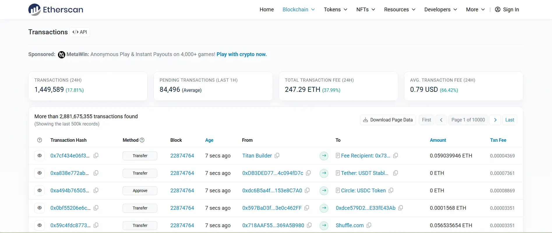 Etherscan is much more than a simple transaction viewer—it is a comprehensive Ethereum infrastructure platform that supports the growth of decentralized applications and services across the ecosystem. The platform enables users to monitor blockchain activity including transactions, token transfers, smart contract execution, wallet balances, NFT mints, contract deployments, and more. With over 2.8 billion transactions indexed and real-time block tracking, Etherscan ensures that every interaction on Ethereum is visible and traceable.