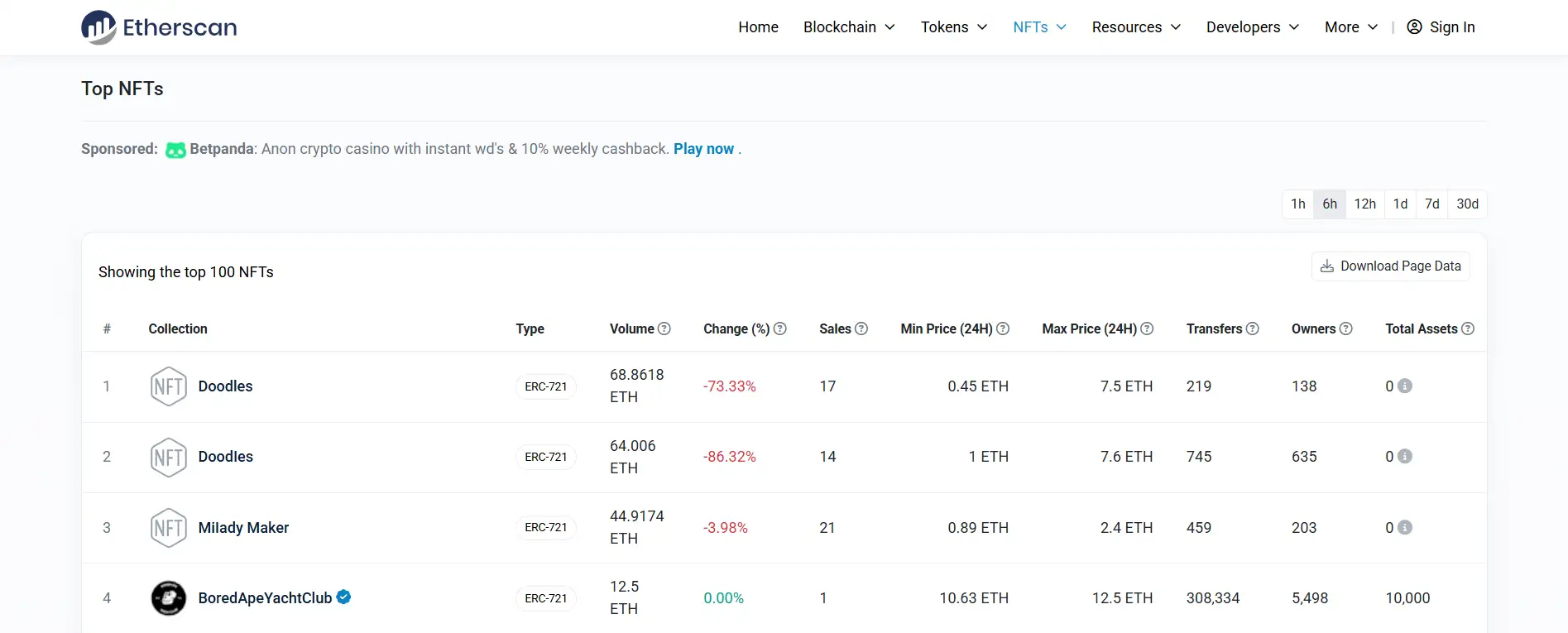 Yes, Etherscan offers a powerful NFT tracking system that includes real-time visibility into top NFT projects, latest trades, top mints, and individual token transfers. Users can inspect metadata, wallet holdings, mint history, and royalties for any ERC-721 or ERC-1155 asset. Navigate to the NFT section on the platform to explore trends or investigate specific token IDs and wallet ownership data.