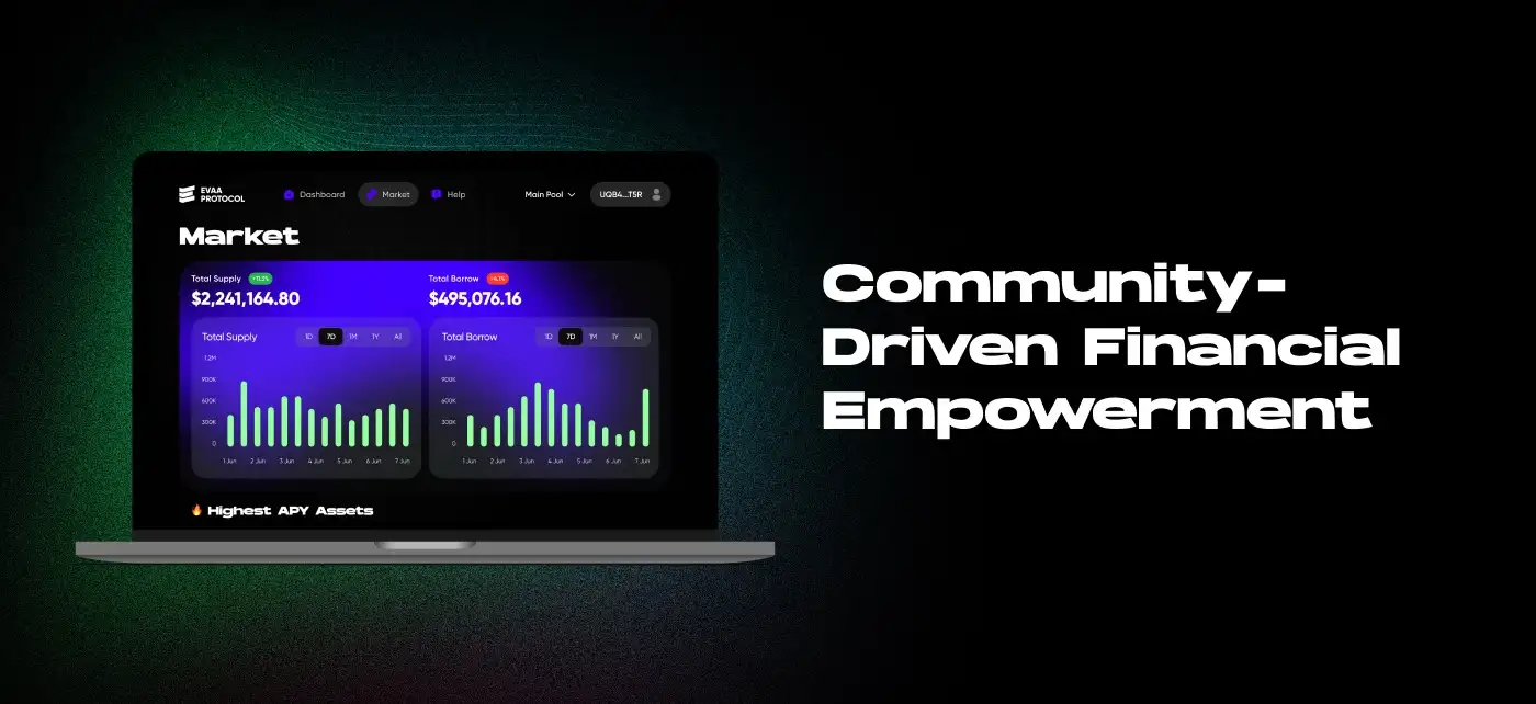 Community governance is at the heart of Evaa’s platform. Users have the ability to influence key decisions through a decentralized voting system. This means that as a participant, you can vote on protocol upgrades, interest rate changes, and other important aspects of the platform, ensuring that Evaa evolves according to the needs of its community.