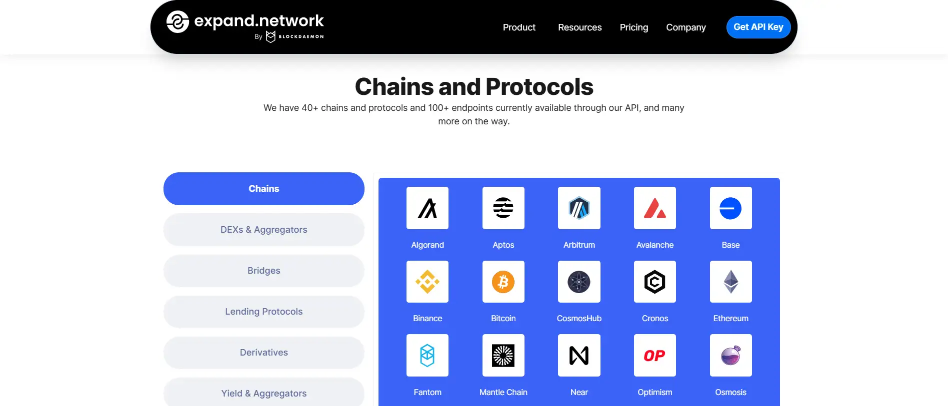 expand.network is a comprehensive DeFi infrastructure platform delivering unified API access to a vast range of blockchains and protocols. With more than 170+ endpoints and support for 45+ chains, it allows developers and institutions to streamline their interaction with DeFi and Web3 protocols from a single point of integration. Whether you're sourcing token prices, executing swaps, retrieving on-chain data, or managing portfolios, the API structure is designed to be versatile and scalable.