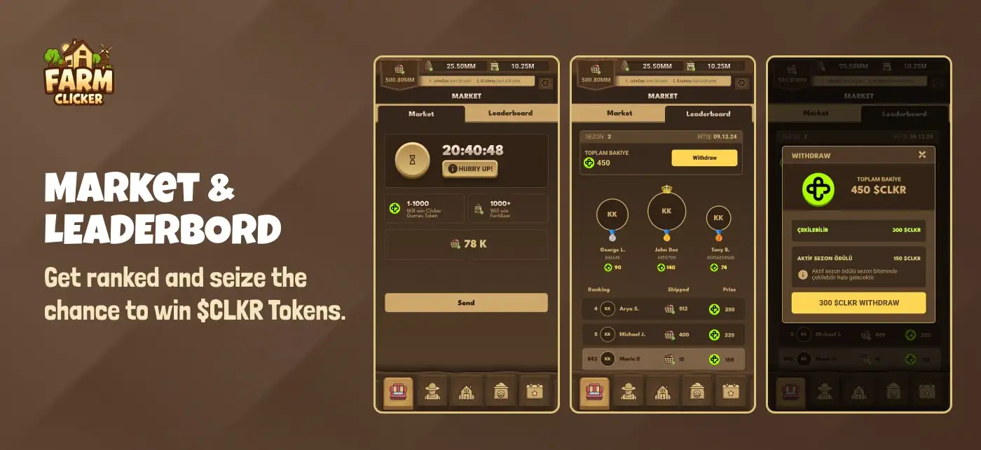 Clicker Farm is an innovative game that combines the idle clicker genre with blockchain technology. Players begin by managing a small farm where they plant seeds and harvest crops, using the earnings to expand their land and grow their farming empire. The game’s main draw is its token economy, where players can earn real-world value through the daily distribution of CLKR tokens.