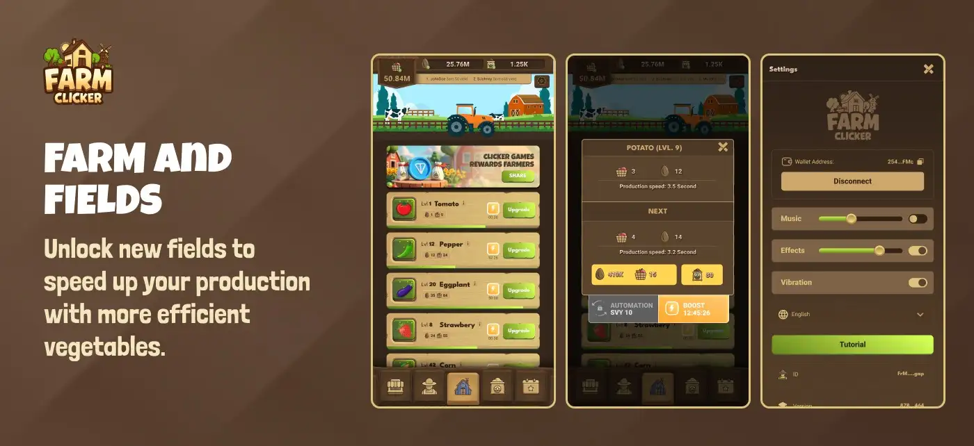 Clicker Farm is a decentralized idle clicker game that merges casual gaming with blockchain-based earning. Designed for fans of farming simulators and idle games, Clicker Farm allows players to manage a small farm and grow it into a vast empire. The game is fully integrated with Telegram, allowing easy access via both desktop and mobile devices. What makes Clicker Farm unique is its use of the in-game CLKR token, which allows players to buy farm resources, compete in events, and earn rewards.