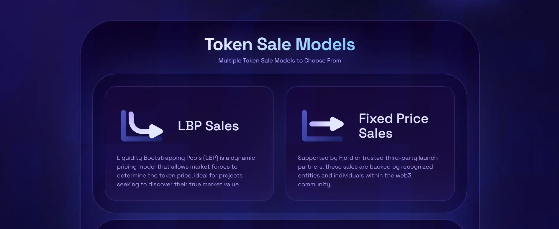 - Multiple Sale Models: Choose from LBPs, Fixed Price, Tiered, and upcoming Overflow token sale types to suit your project’s fundraising needs.