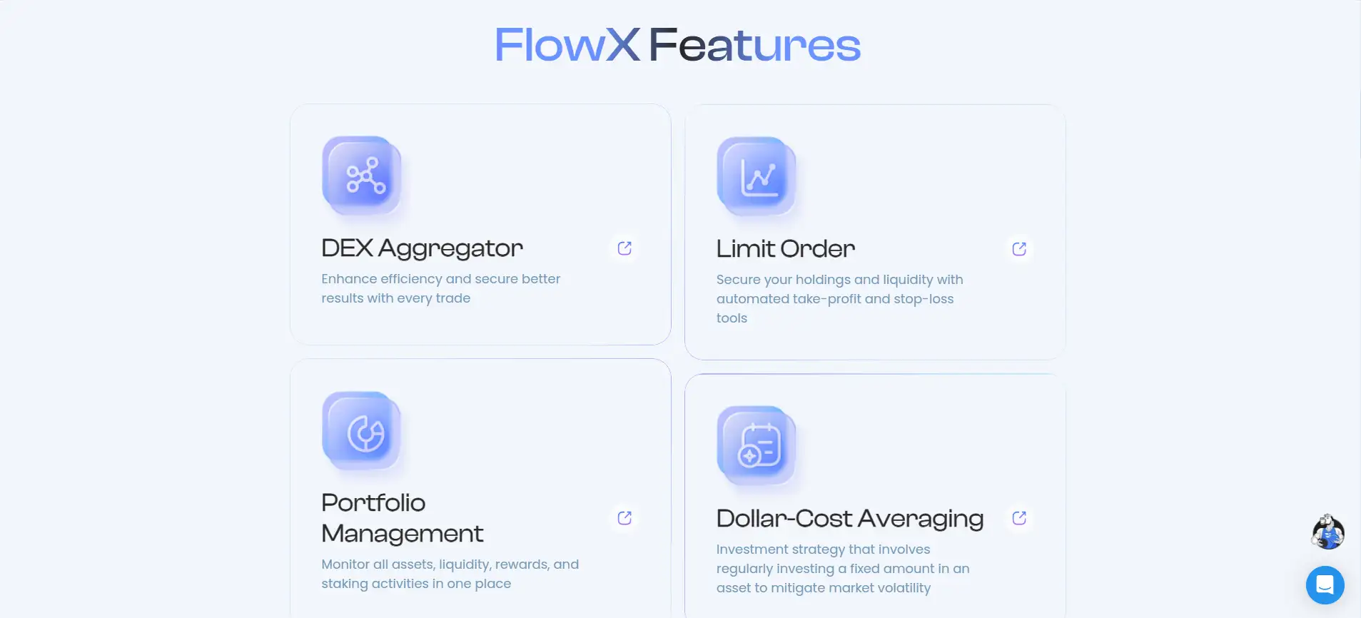 FlowX Finance sets itself apart through its all-in-one approach to DeFi on the Sui blockchain. With built-in features like DEX aggregation, limit orders, dollar-cost averaging, Farming as a Service, and a Launchpad, FlowX provides a comprehensive trading and liquidity management suite in one place, eliminating the need for multiple platforms.