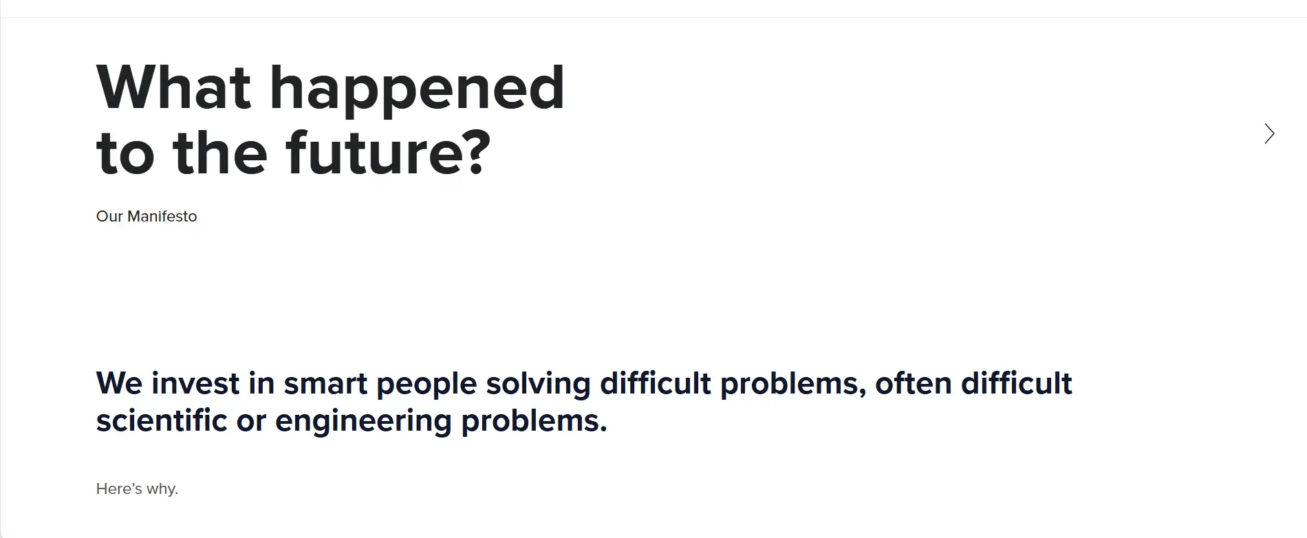 Founders Fund believes that true progress comes from confronting and overcoming difficult engineering and scientific challenges—not from building another app for convenience. The firm intentionally seeks out companies with technology risk because those are the companies that can deliver decades of transformative value. As noted in their manifesto, they reject the incrementalism that plagues much of venture capital and instead focus on building the future people thought would already exist by now.
