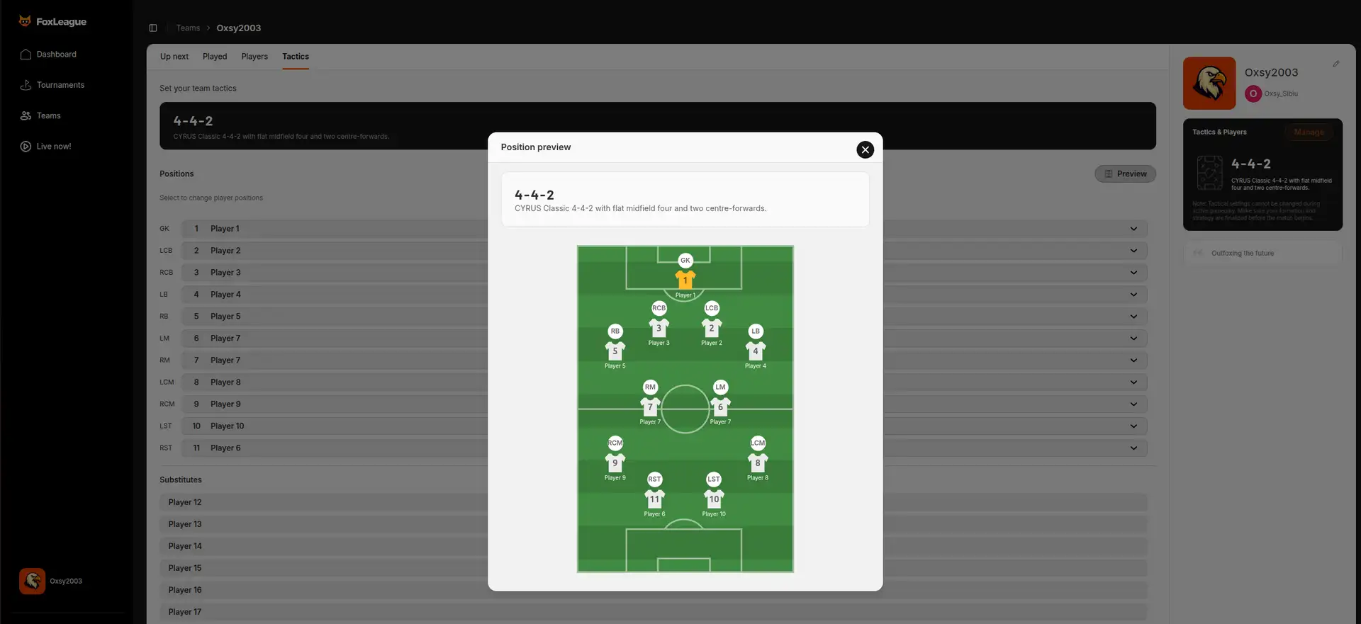 Looking ahead to 2025, Foxsy.AI plans to release a Game Viewer in Q1, which will allow users to watch and analyze live or recorded soccer matches. By Q2 2025, the Team Formation Creator will be available, enabling users to build and manage AI-powered teams without needing to write code. The platform also aims to launch its first online soccer tournaments, where participants can compete using strategies created with the Formation Creator.