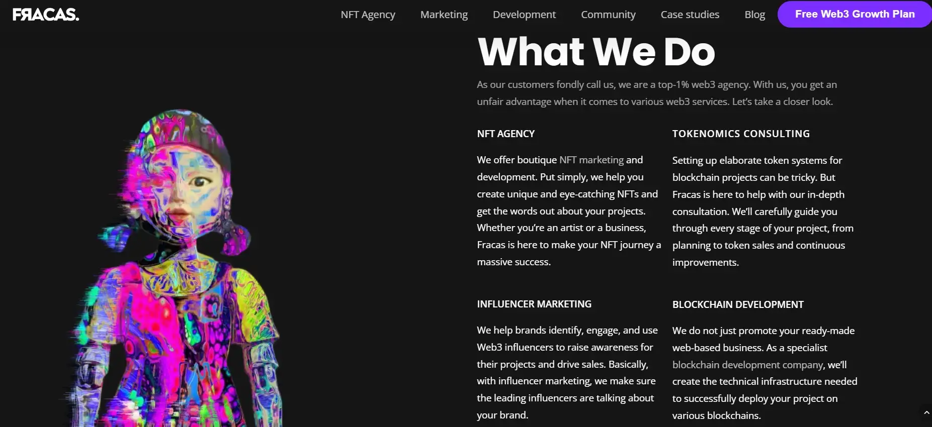 - Blockchain Development: Fracas Web3 Studio provides technical development services, including smart contract auditing and decentralized application (dApp) creation.