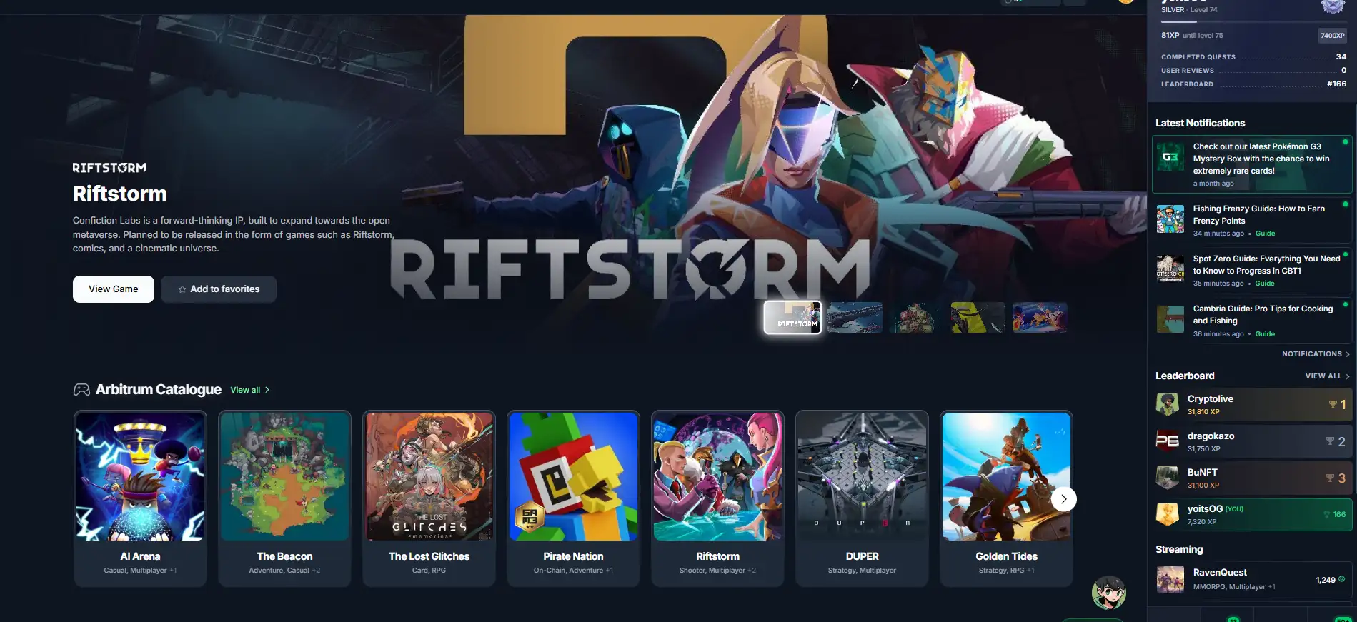 The platform is chain-agnostic and genre-inclusive, featuring a wide catalog of games including AI Arena, My Pet Hooligan, Mini Royale, The Beacon, Parallel, and many more. GAM3S.GG users can not only read deep-dive reviews and news but also participate in daily quests, earn XP, unlock Mystery Boxes, and track their progression across the Web3 landscape.