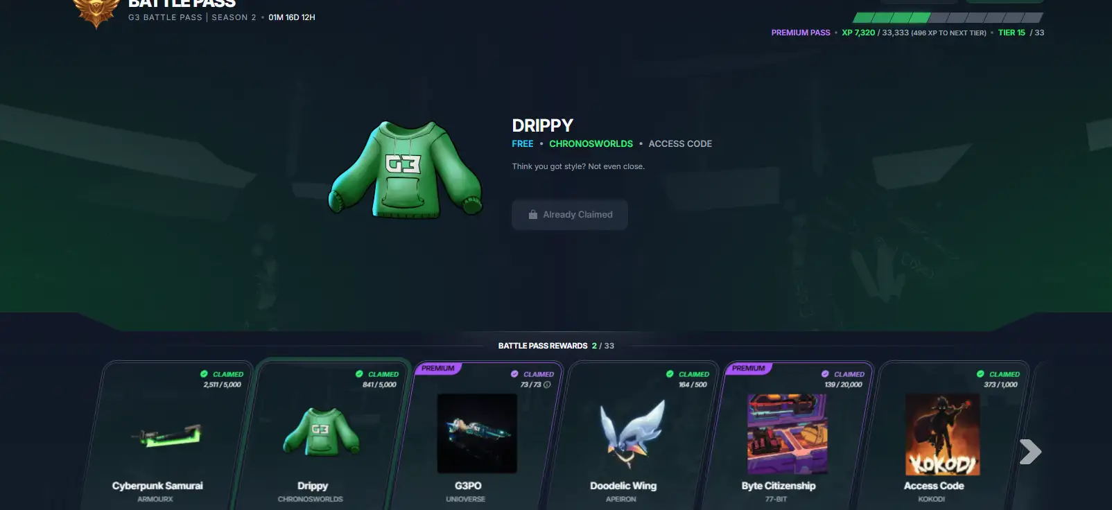 - Step 5 – Join Quests and Earn: Complete daily and seasonal GAM3 Quests to earn XP, Mystery Boxes, and exclusive items.