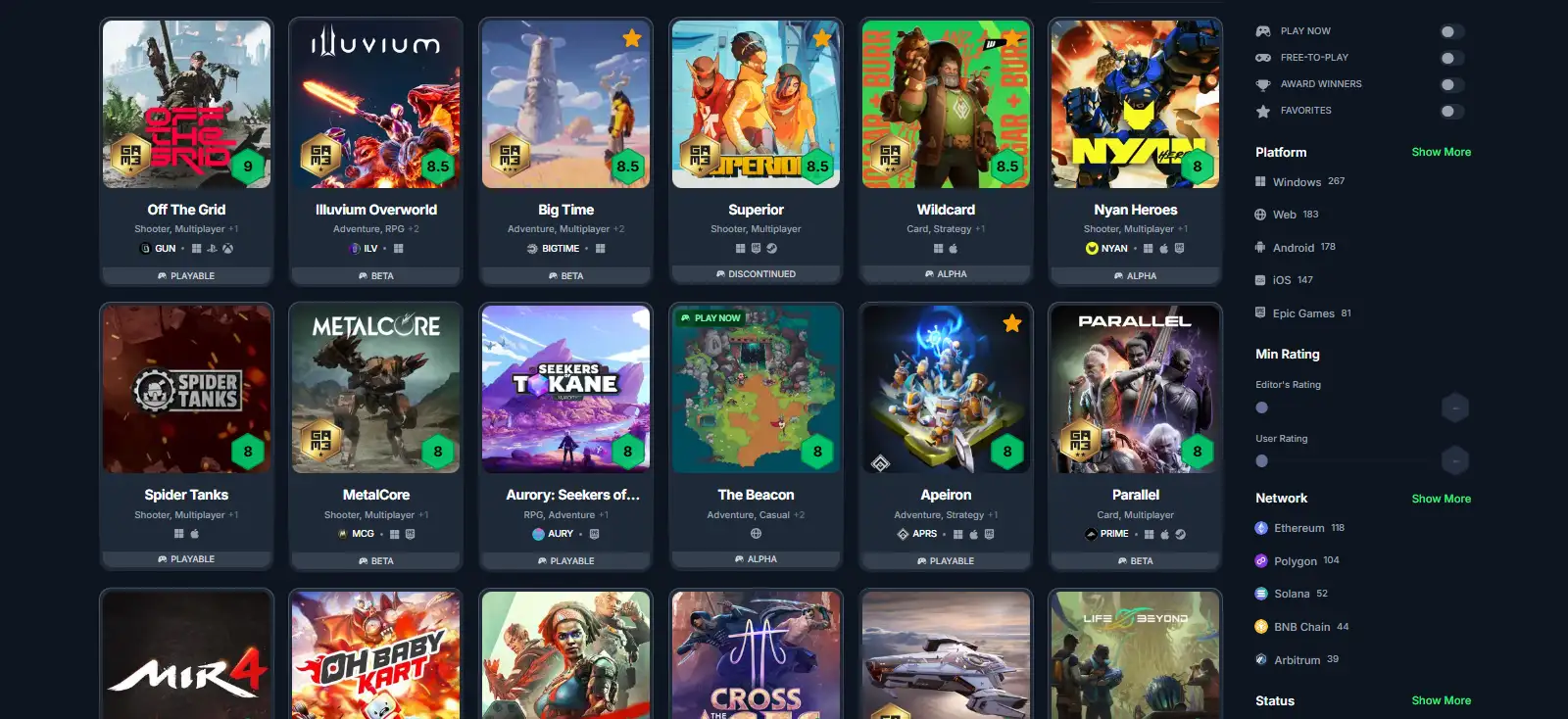 - Curated Game Discovery: Access hundreds of blockchain games across all genres with filters, rankings, and real user insights.