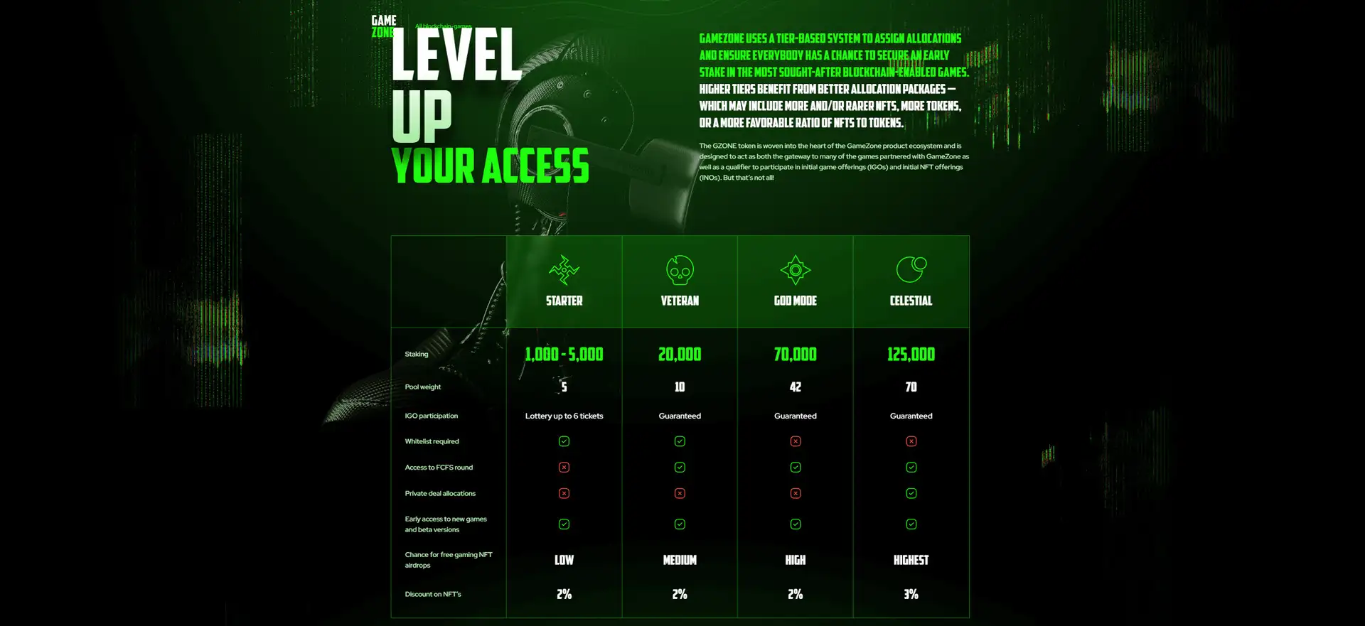 GameZone app's ecosystem includes a range of tools and services designed to support game development and launch. These include Initial Game Offerings (IGOs), which provide a funding mechanism for new games, and Initial NFT Offerings (INOs), which enable the creation and distribution of in-game assets. The platform also features a staking system, where users can stake their $GZONE tokens to earn rewards and participate in governance decisions. By offering these services, GameZone app aims to create a vibrant and dynamic gaming ecosystem that fosters innovation and creativity.